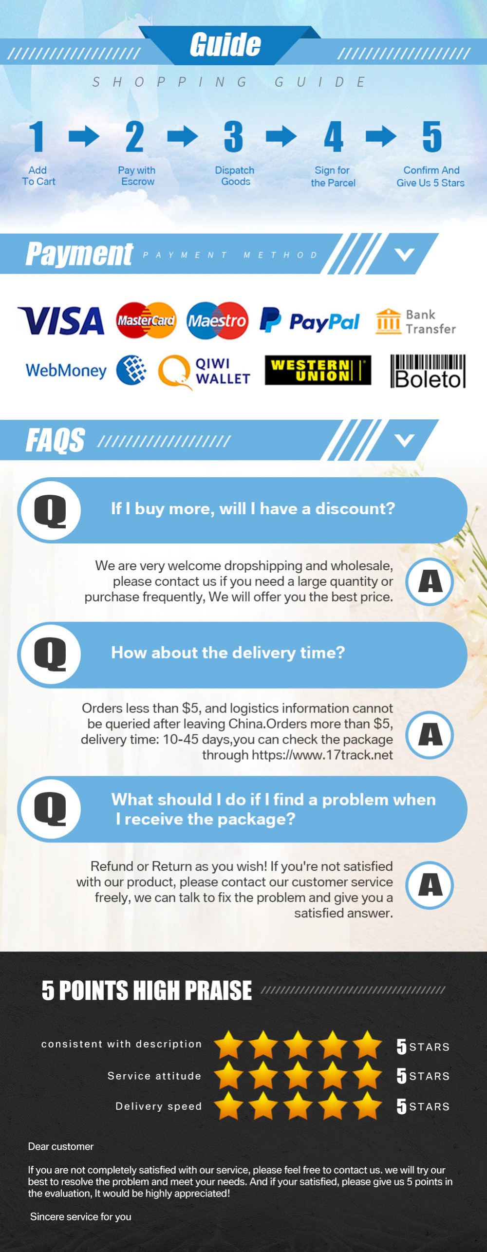 Wenn waren haben jede qualität frage, sie Können Rückkehr oder ersatz verlangen ist innerhalb von 3 tage nach dem empfangenen paket & in original zustand und verpackung.