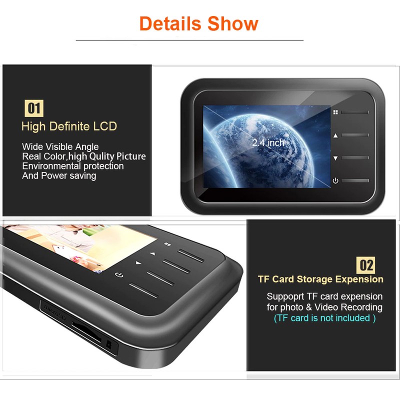 -Türklingel taste/auf aus-taste klicken auto foto/video record (benötigen legen micro SD karte, optional), video aufzeichnung mit mehr details als foto rekord