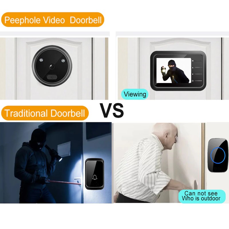 Topvico Video Guckloch Türklingel Kamera Video-auge Auto Rekord Elektronische Ring Nacht Ansicht Digitale Tür Viewer Entry Home Security