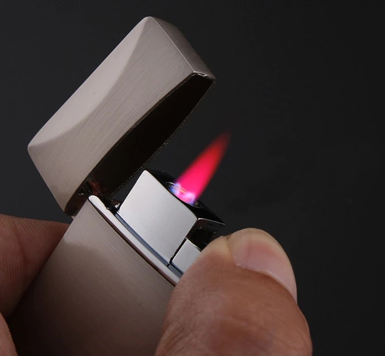 Taschenlampe Turbo Winddicht Rohr Leichter Ultra-Dünne Kompakte Metall Lange Streifen Jet Gerade Feuer Gas Butan Zigaretten Tasche Feuerzeuge