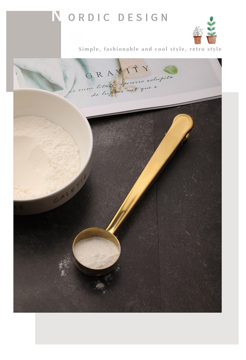 Zwei-In-One 15Ml Edelstahl Versiegelt Clip Kaffee Löffel Küche Werkzeug Backen Skala Löffel Gewürz Milch Pulver Löffel