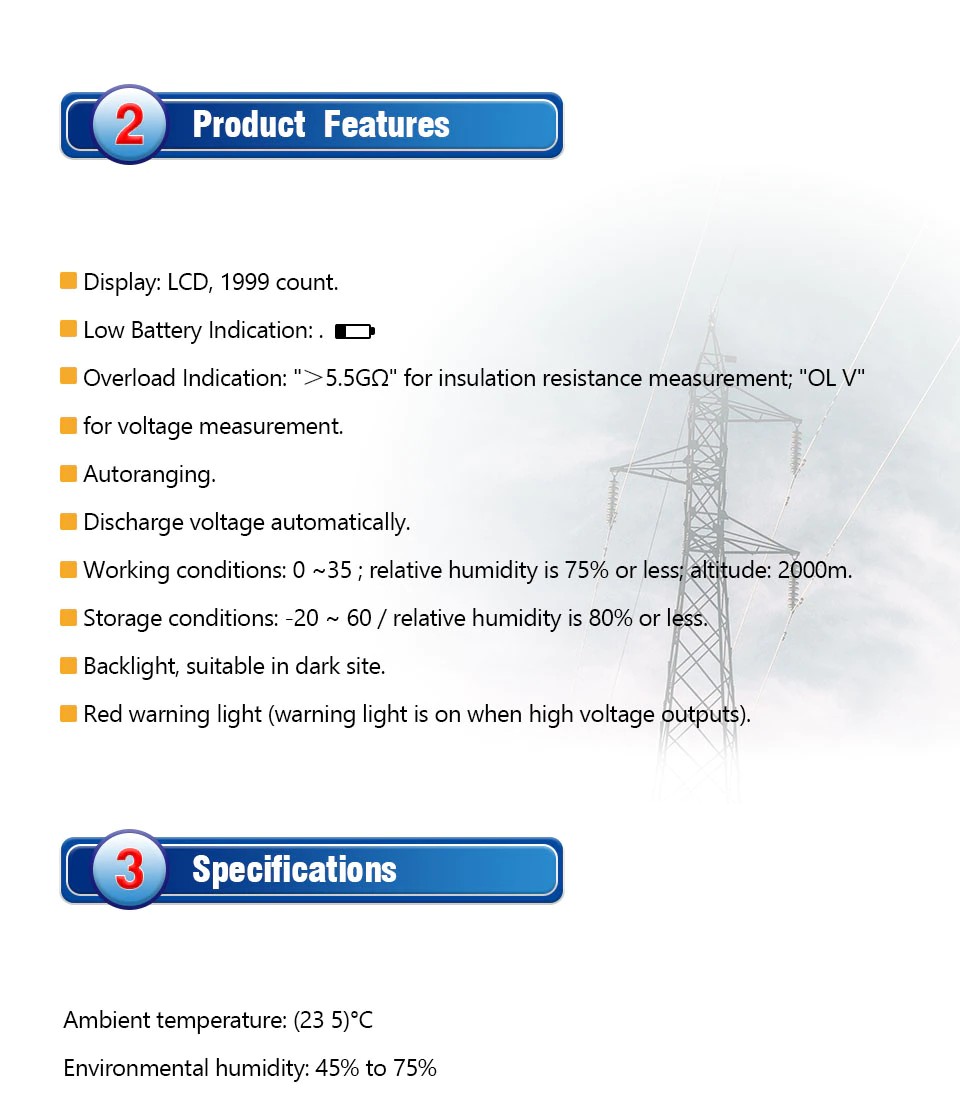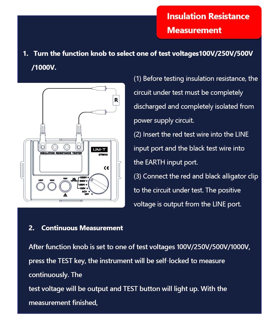 UT500 serie isolierung widerstand tester nimmt neue design durch die kombination und große skala integrierte schaltung und digitale schaltung, integrierte isolierung widerstand und dc spannung, ac spannung messung funktion parameter, wie; Höhere genauigkeit, stabile leistung, bequem und zuverlässigen betrieb. geeignet für transformator, motor, kabel, schalter, Elektrische geräte und andere elektrische geräte und mess isolierung widerstand von die isolierende material, ist von alle arten von elektrischen ausrüstung wartung, test und überprüfung werkzeuge.