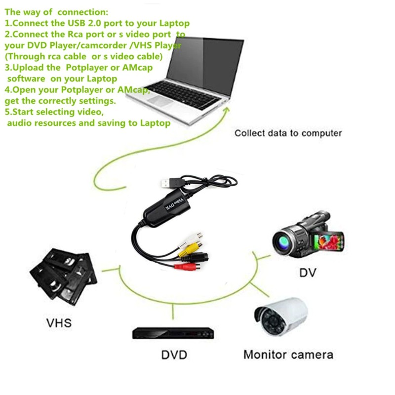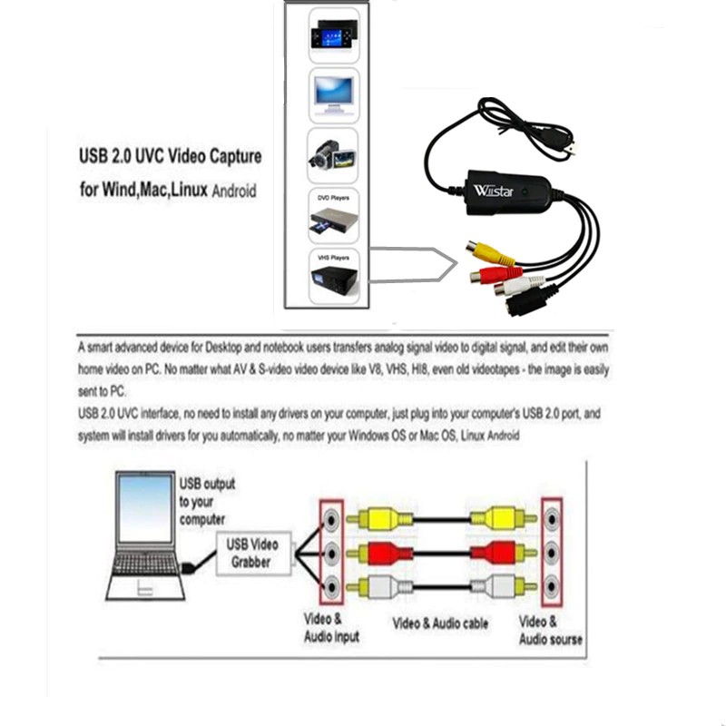 Usb 2, 0 Einfach Kappe Audio Video Capture Dvr Karte Adapter Vhs To Dvd Converter Für Windows 10/8/7/Xp