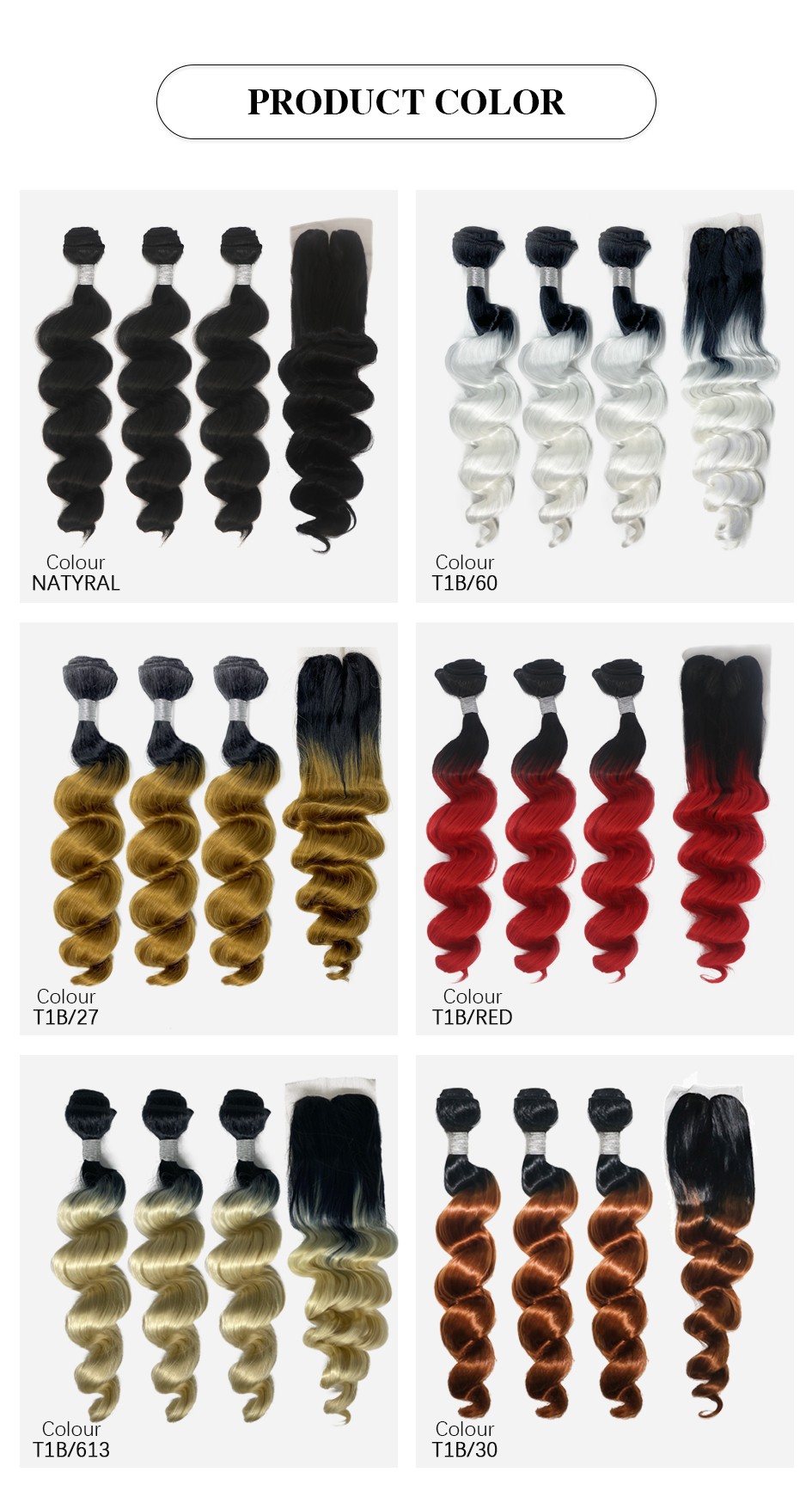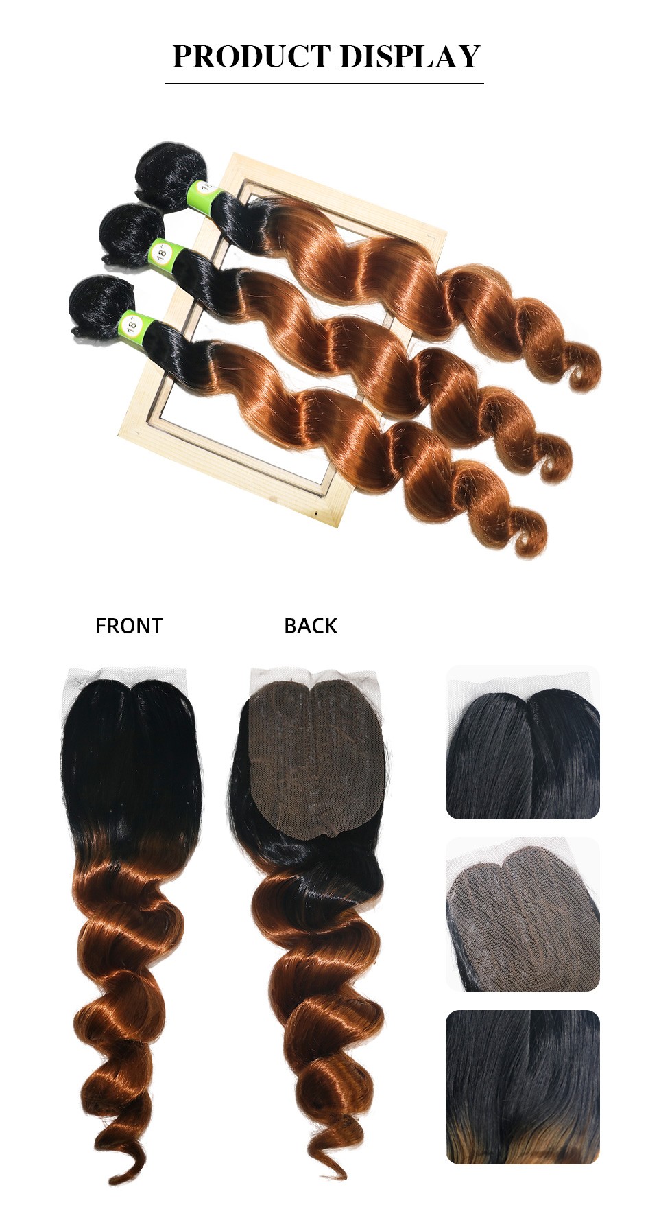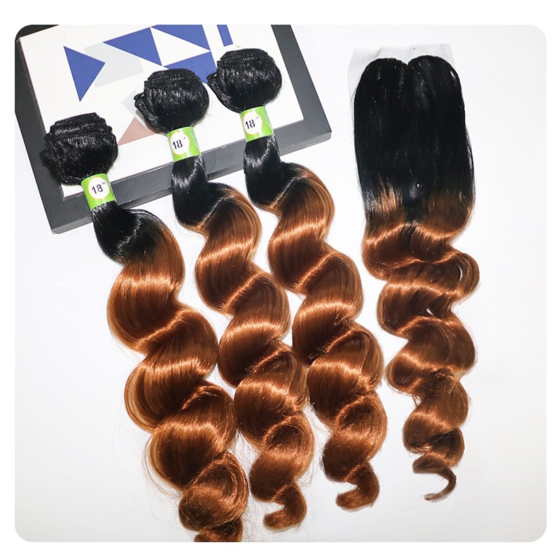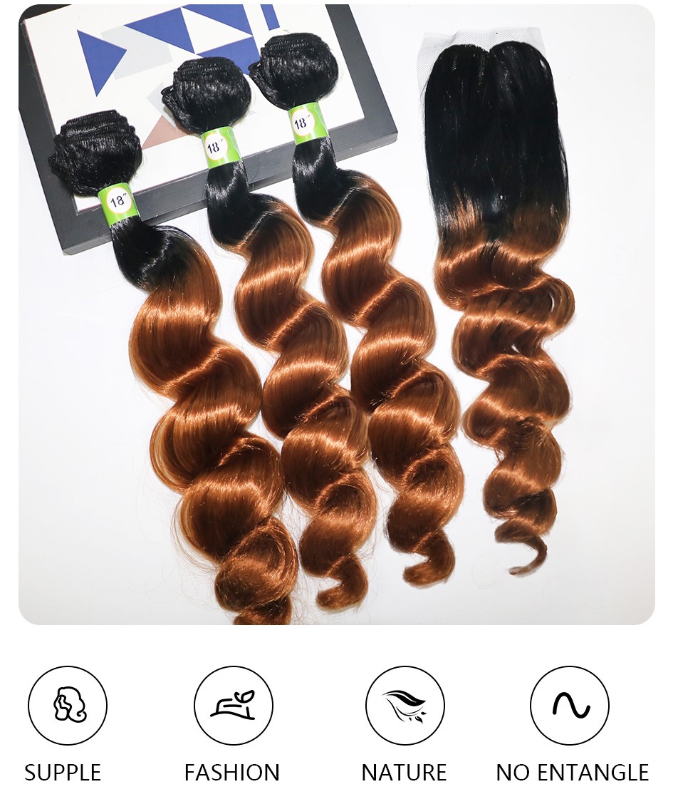 Lose Welle Bundles mit Verschluss Synthetische Weben Haar 18-30 inch Ombre Natürliche Braun Extensions Bundles Haar für Schwarz frauen