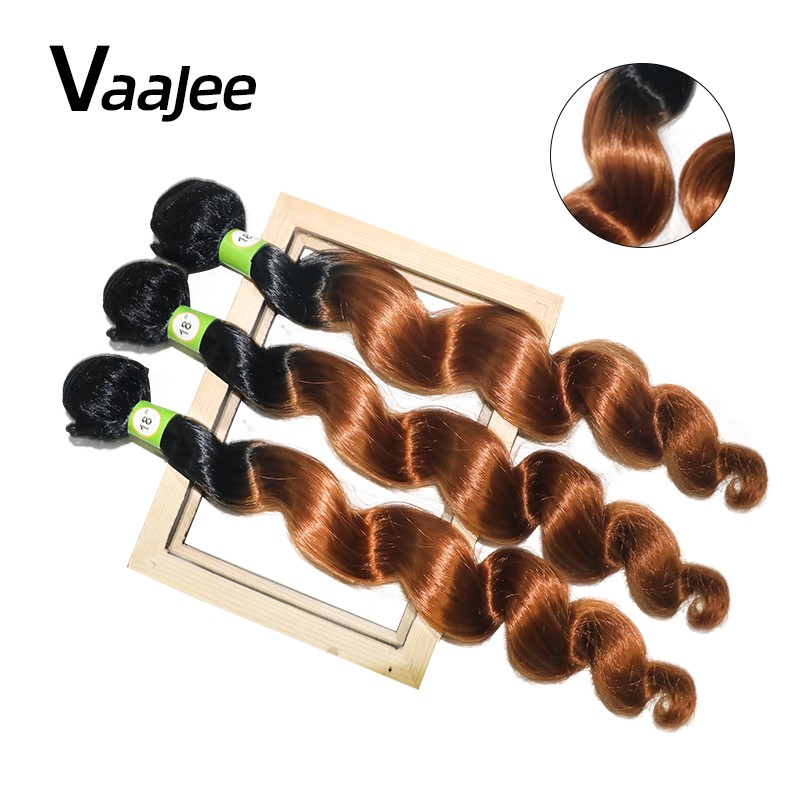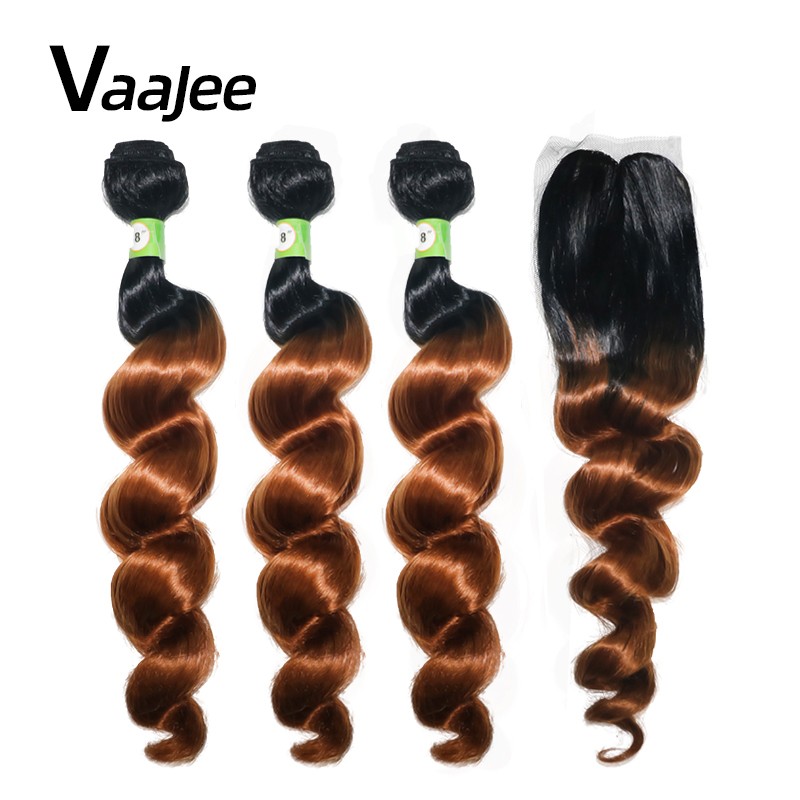 Vaajee Lose Welle Bundles Mit Verschluss Synthetische Weben Haar 30 Zoll Ombre Natürliche Braun Extensions Bundles Haar Für Schwarze Frauen
