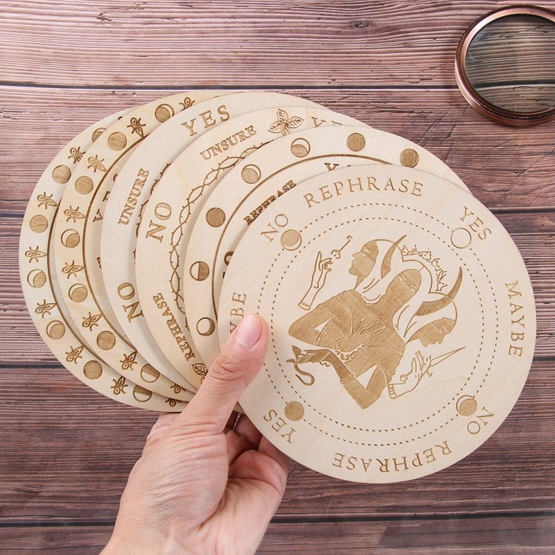 Holz Pendel Bord Mit Sterne Sonne Und Mond Für Divination Nachricht Bord Holz Carven Bord Metaphysische Altar Dekoration