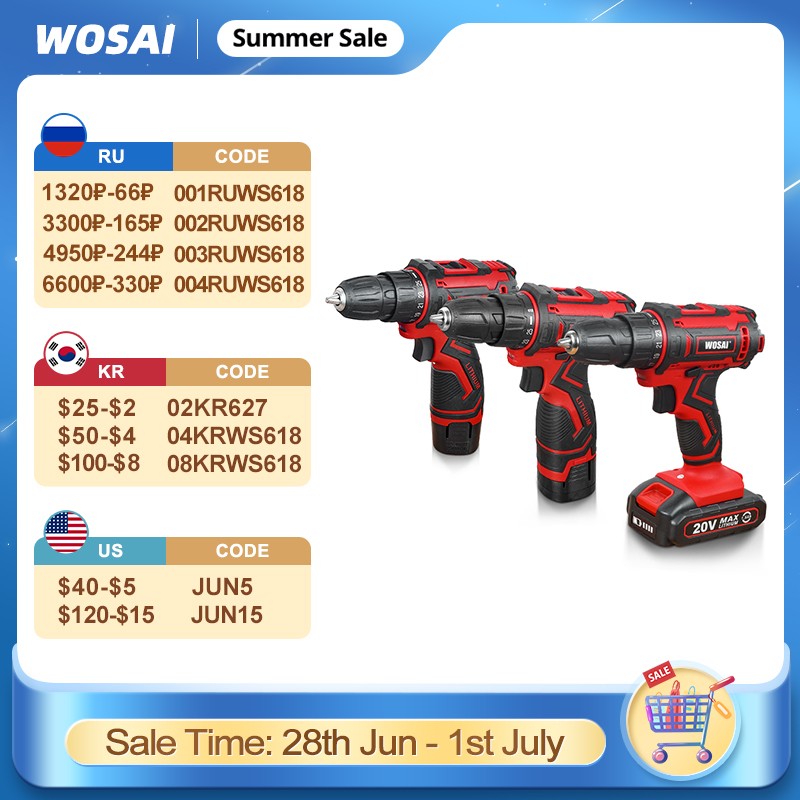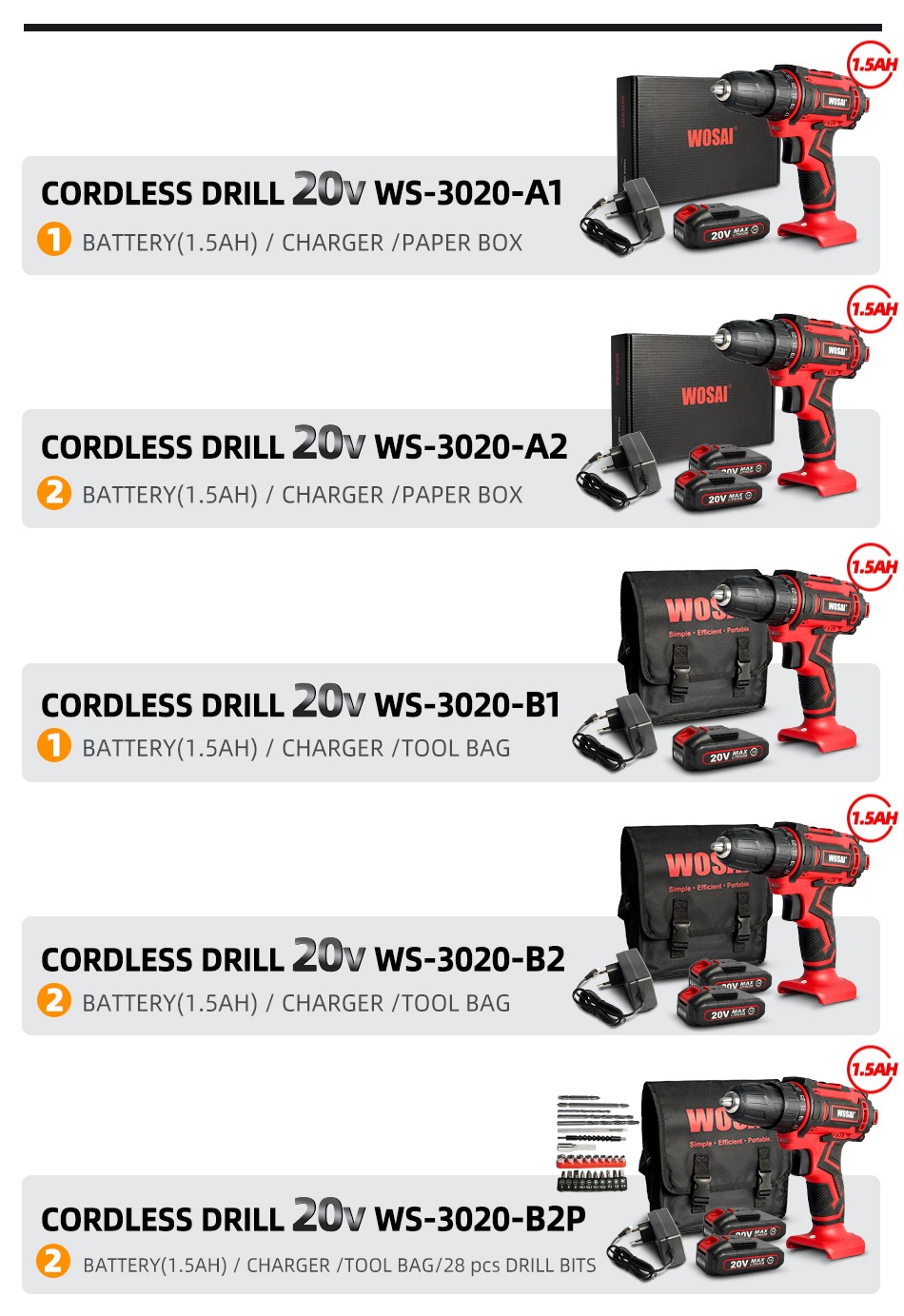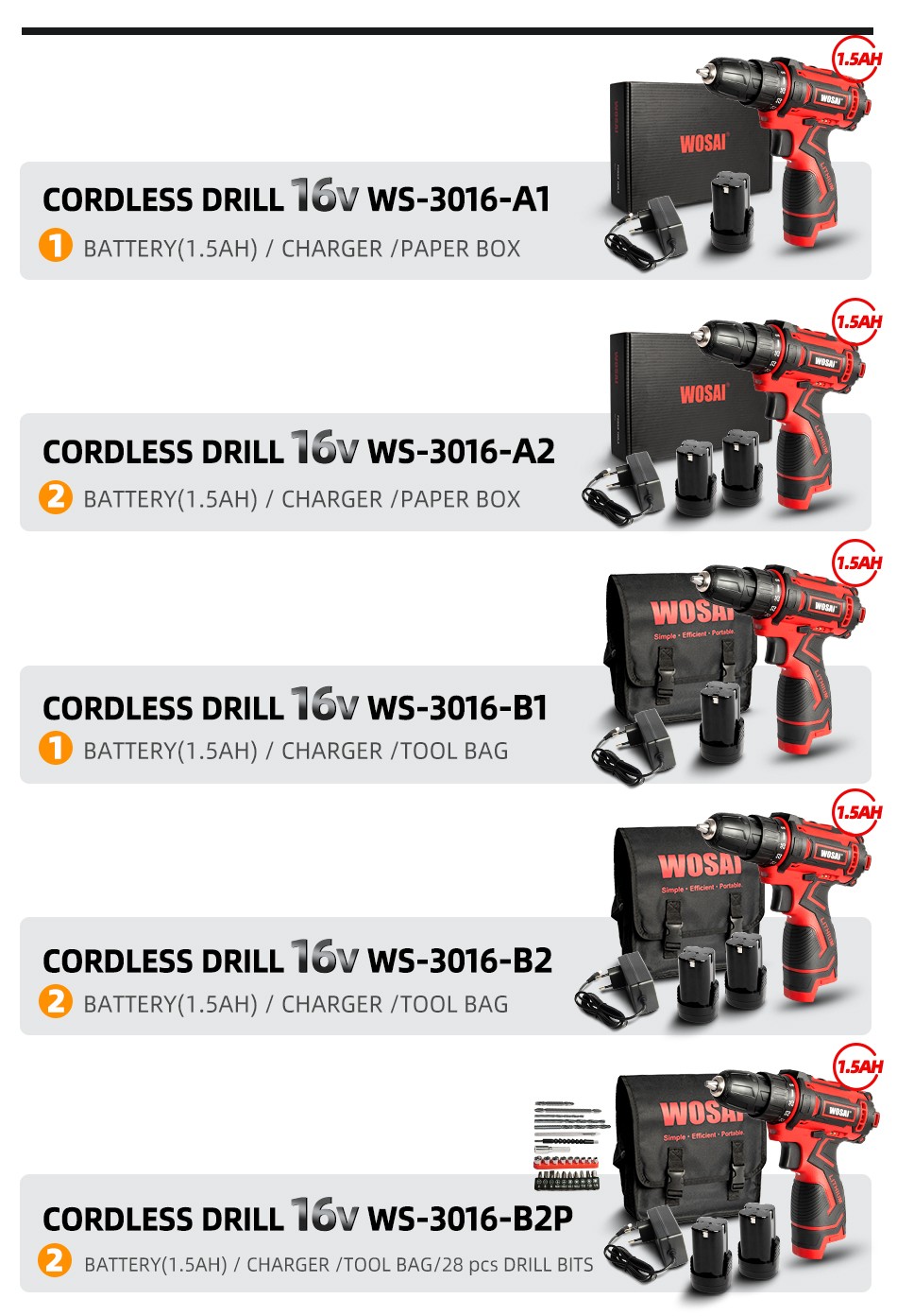Wosai 12V 16V 20V Akku-Bohrschrauber Elektrische Schraubendreher Mini Wireless Power Fahrer Dc Lithium-Ionen Batterie 3/8-Zoll