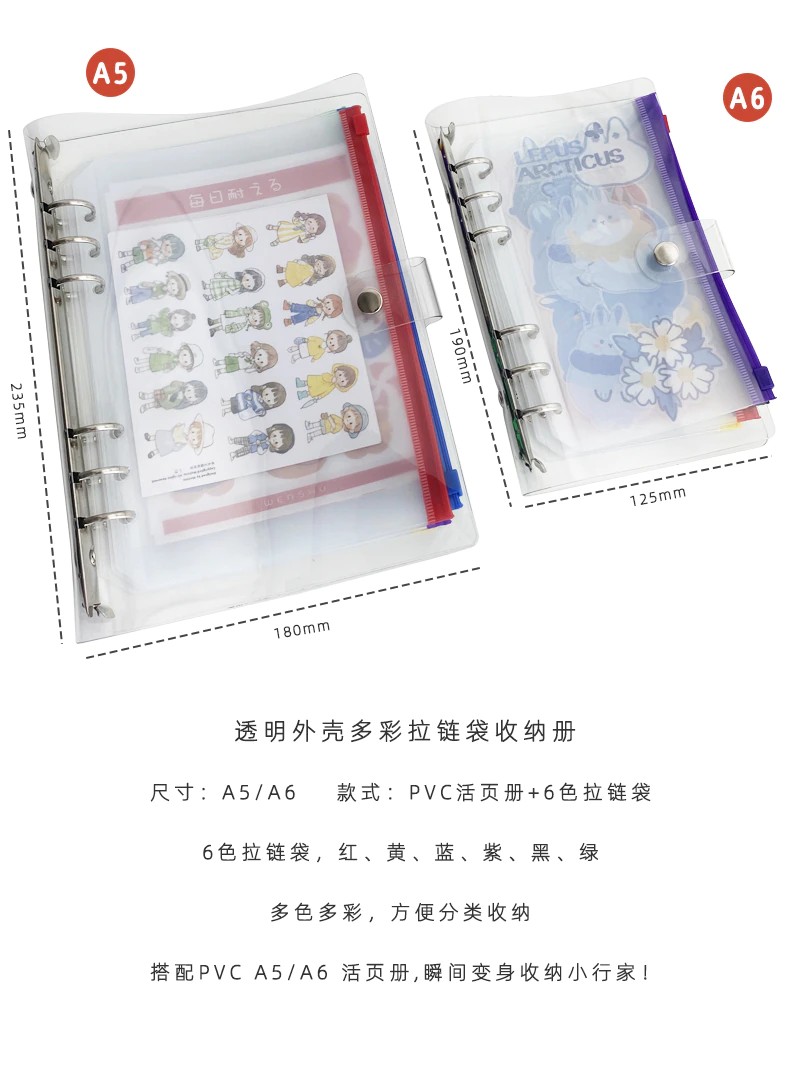Yoofun A5 A6 Pvc Lagerung Tasche Mit Reißverschlüsse Lose Blatt Tasche Transparent Getrennt Planer Kreditkarte Taschen Lagerung Organisieren