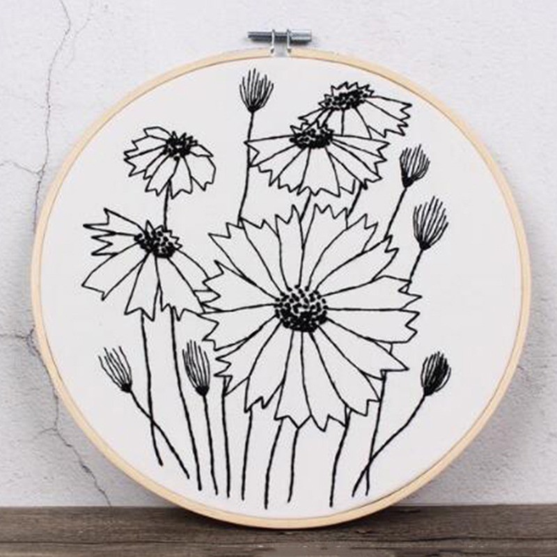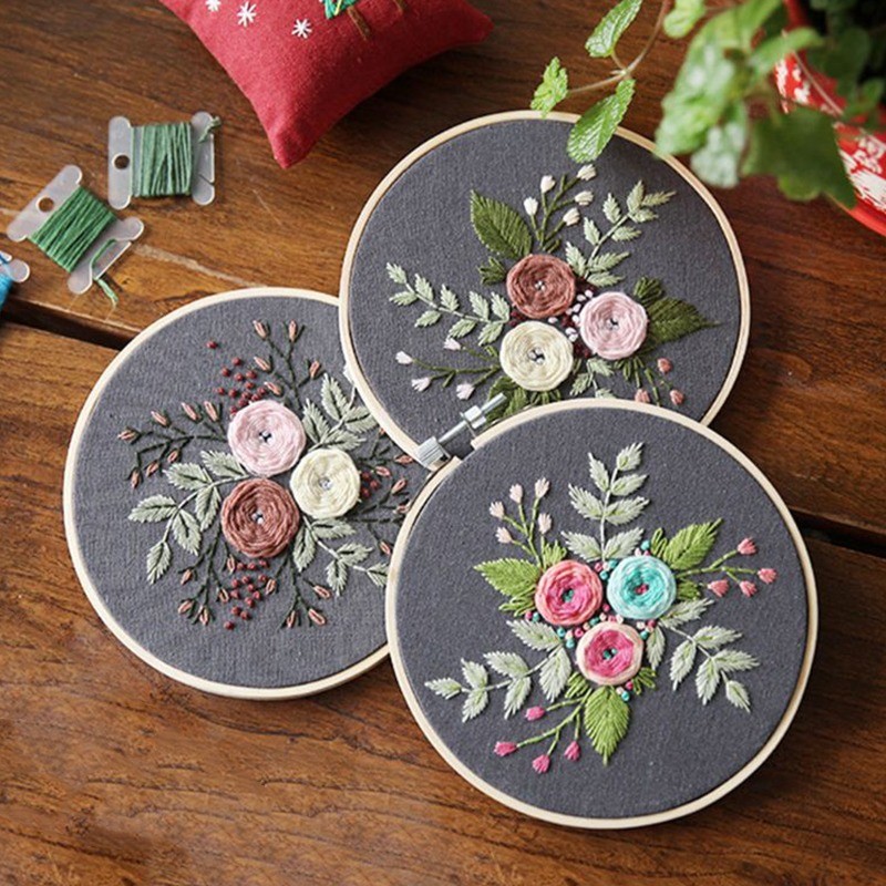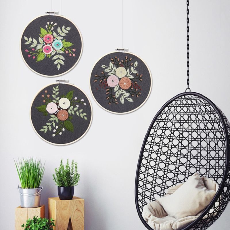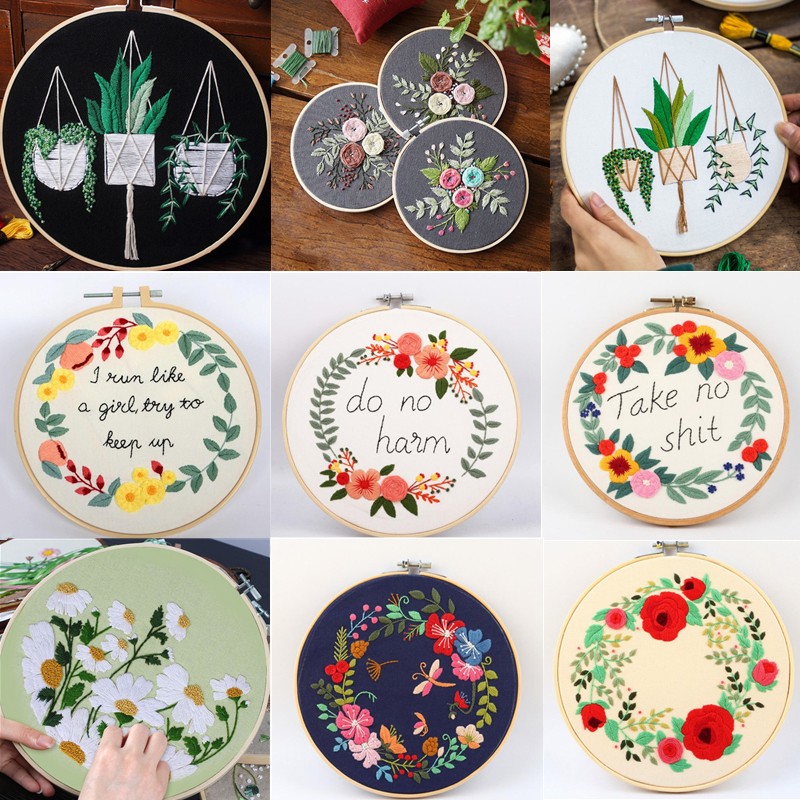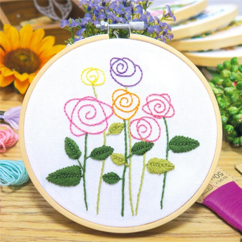 Diy Flowers Plants Pattern Set Needlework Tools Printed Beginner Round Cross Stitch Kit Sewing Craft Kit