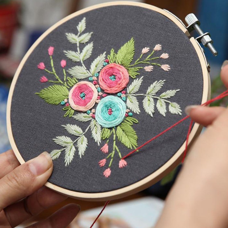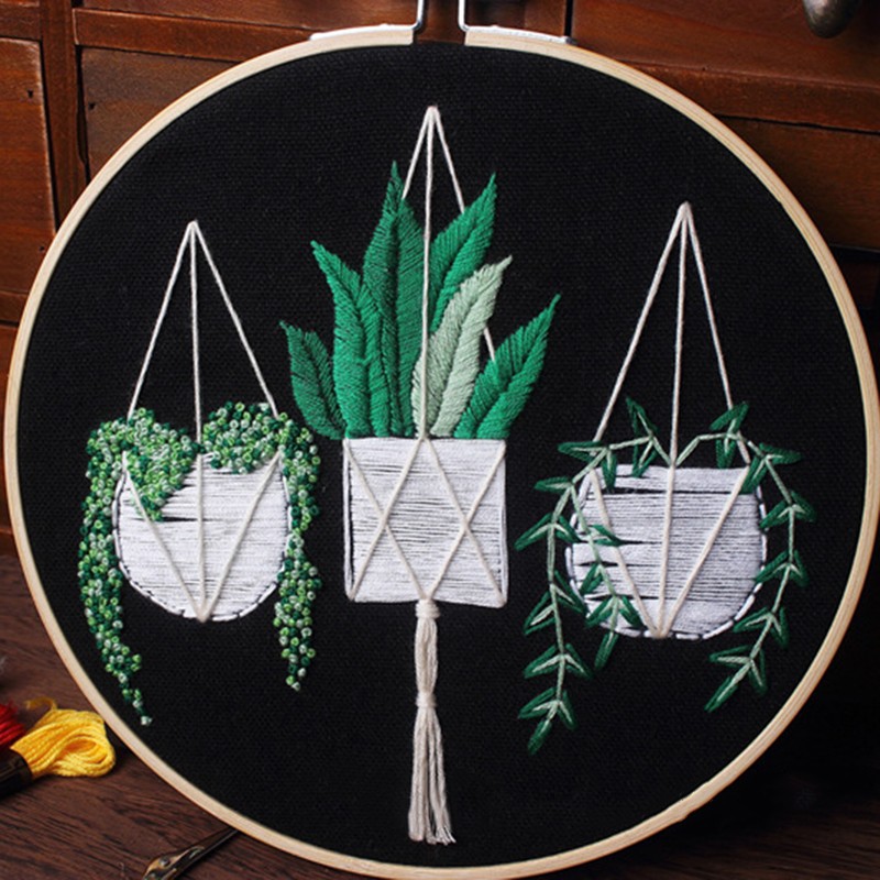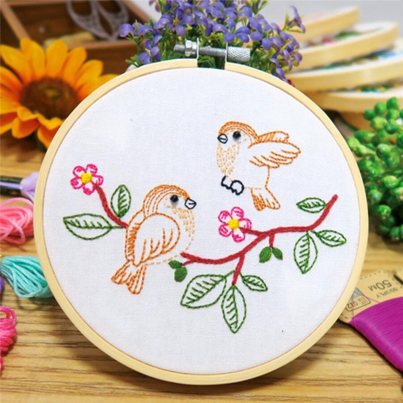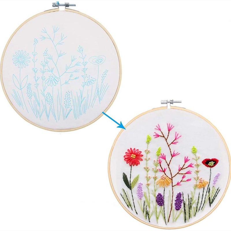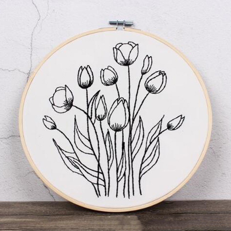 Diy Flowers Plants Pattern Set Needlework Tools Printed Beginner Round Cross Stitch Kit Sewing Craft Kit