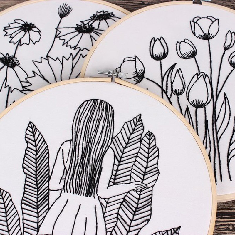 Products include: 1 printed embroidery cloth, sufficient thread board, 3 special embroidery needles, 1 high-definition drawing
