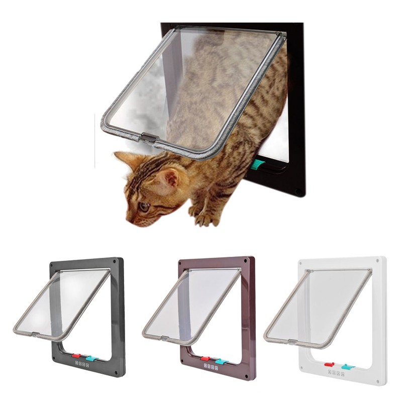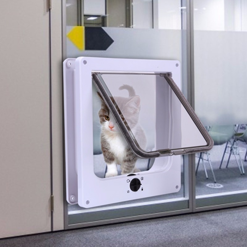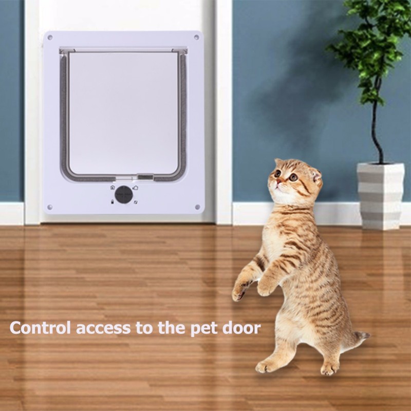 Dog Cat Flap Door With 4 Way Security Lock Flap Door For Dog Cats Abs Plastic Small Pet Gate Door Kit Cat Dogs Flap Doors