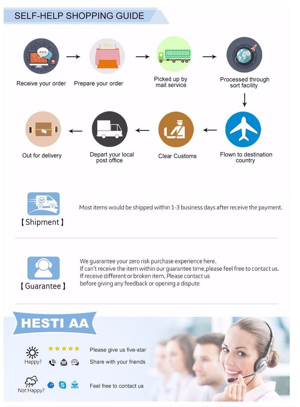 1. If it have any quality problems during international transportation, please inform customer service first, we will re-deliver for you, thank you