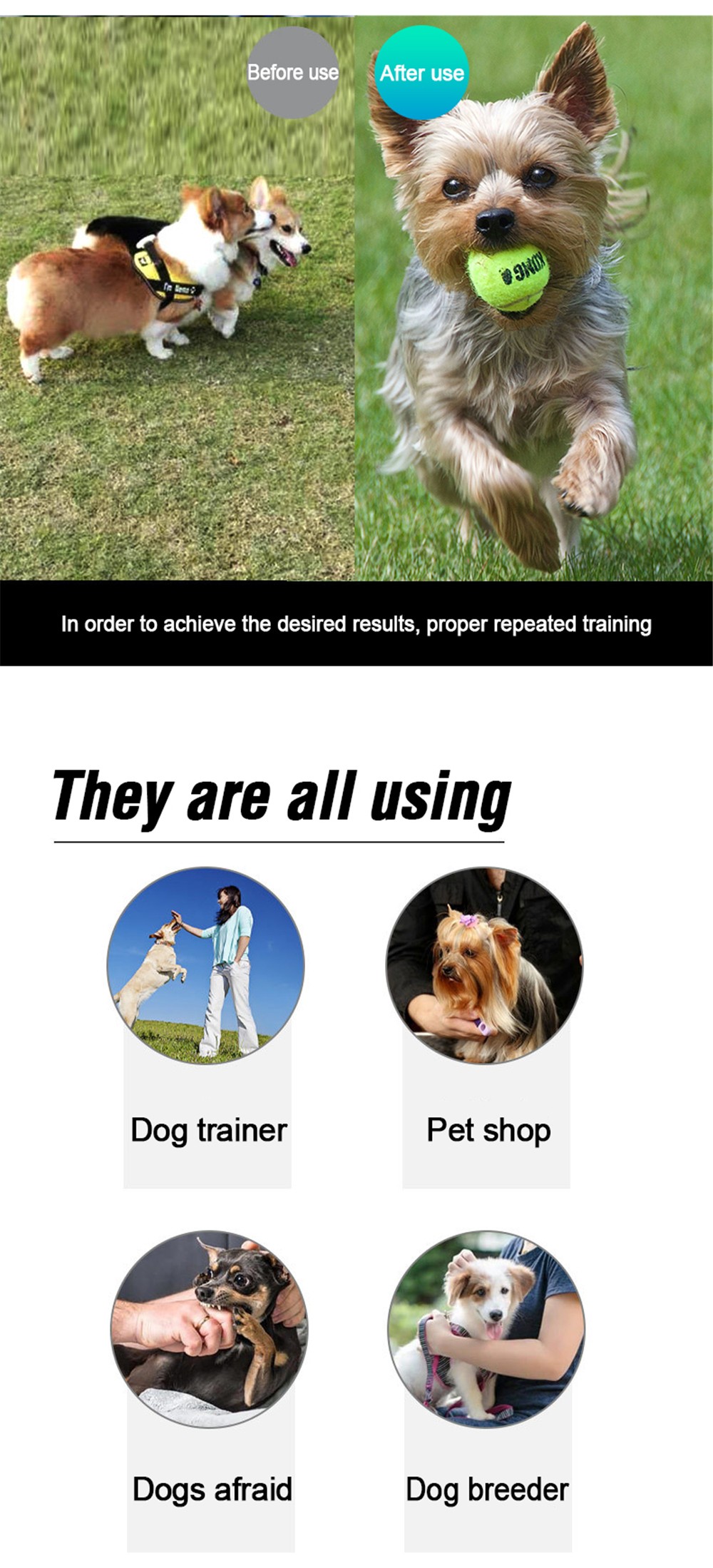 Easy to operate and train a variety of dogs, such as dogs used as pets, police and shepherds.