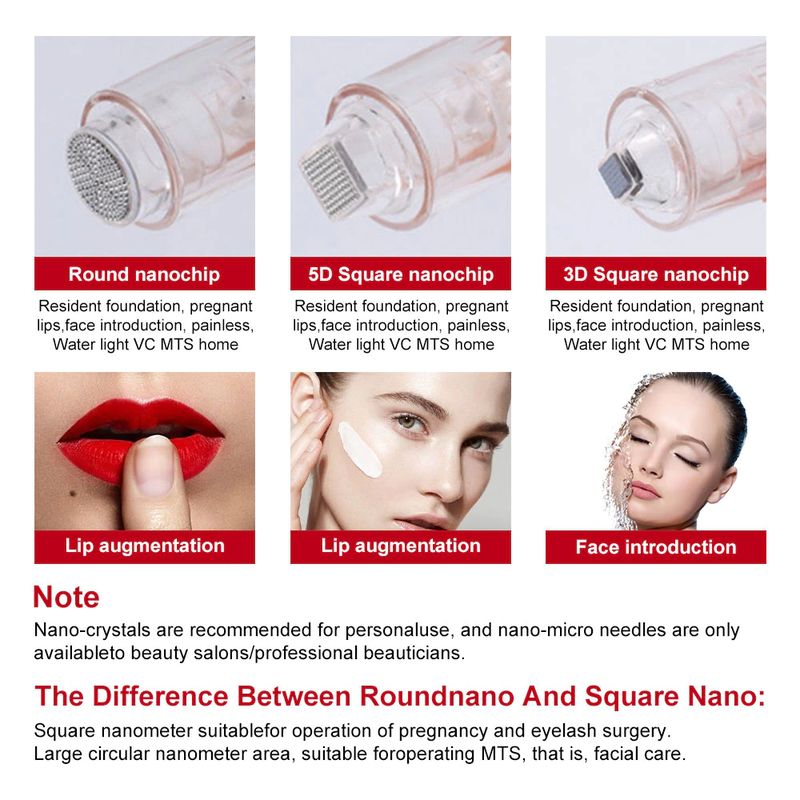 Round nanochip functions: leading water, freeze-dried powder, MTS pro-lip surgery, daily care of skin.