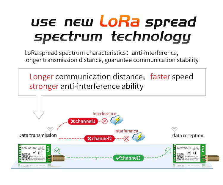 E220-900T22D Lora Wireless Uart Module Rssi Ism 868Mhz 915Mhz 22Dbm Module Lora Spread Spectrum Uart Interface