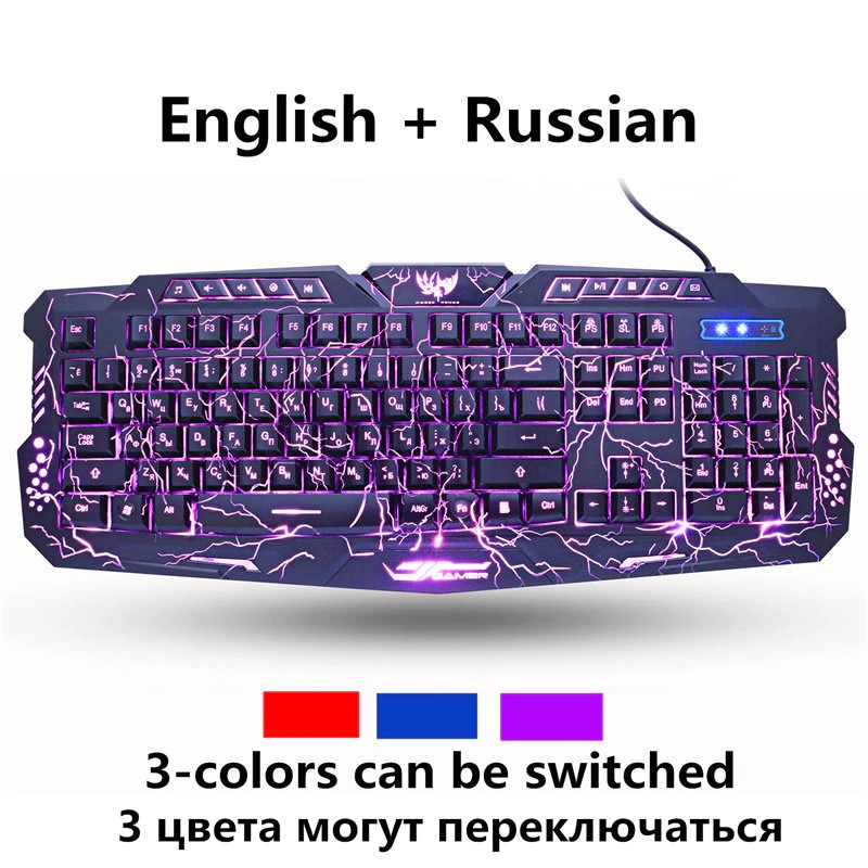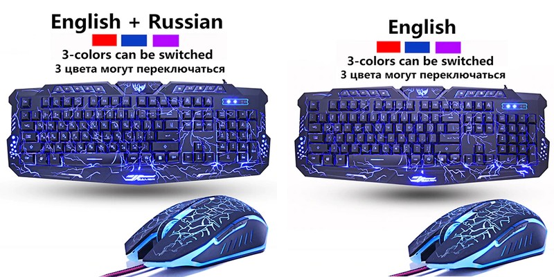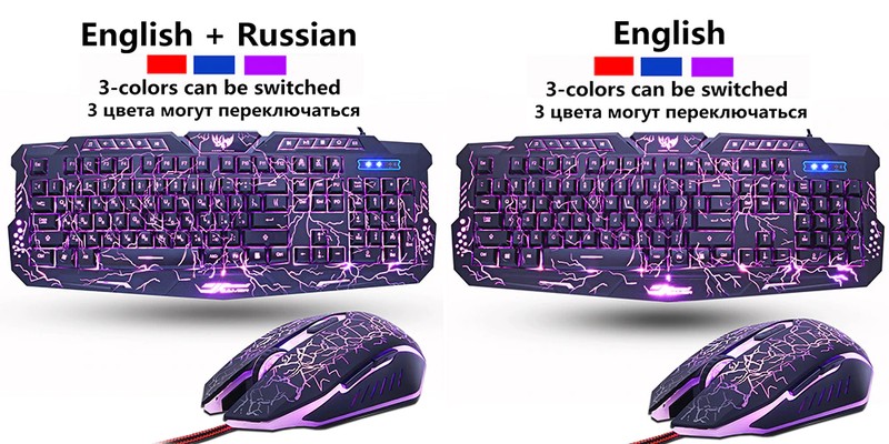 En Game Keyboard And Mouse Backlit Usb Wired Waterproof Cool Blue Red Purple Russia