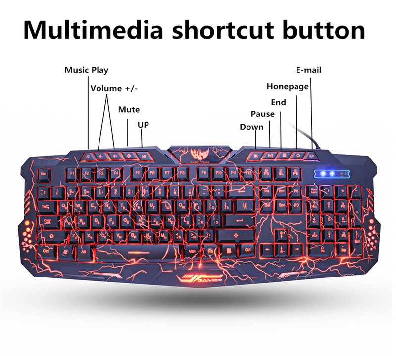 This Three Colors Backlit USB Multimedia Gaming Keyboard is about to take you to reach the new high level of a sumptuous gaming experience. Adjustable LED colors and brightness, all 3 colors can be set as full brightness (individual light control key). After gaming, 10 media keys give you fast access to your applications and settings.