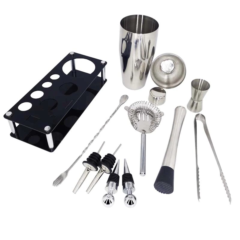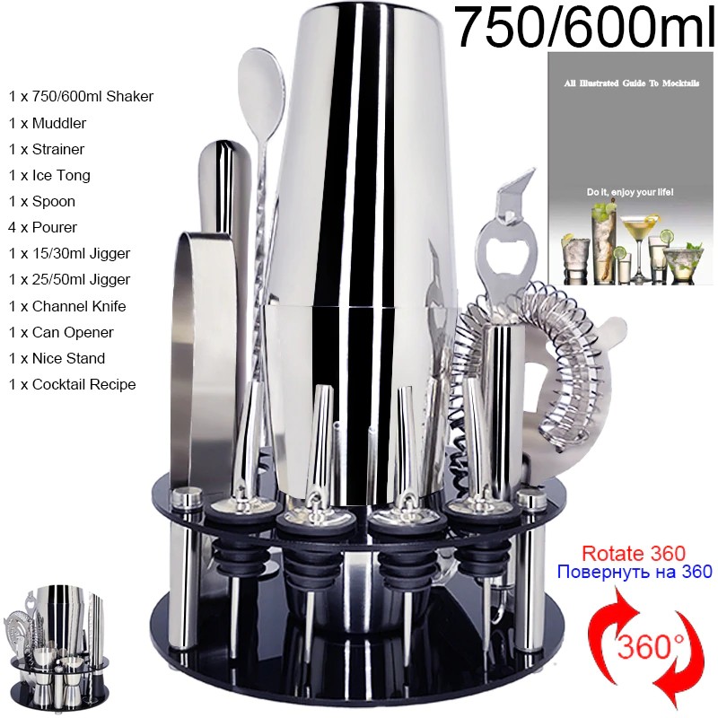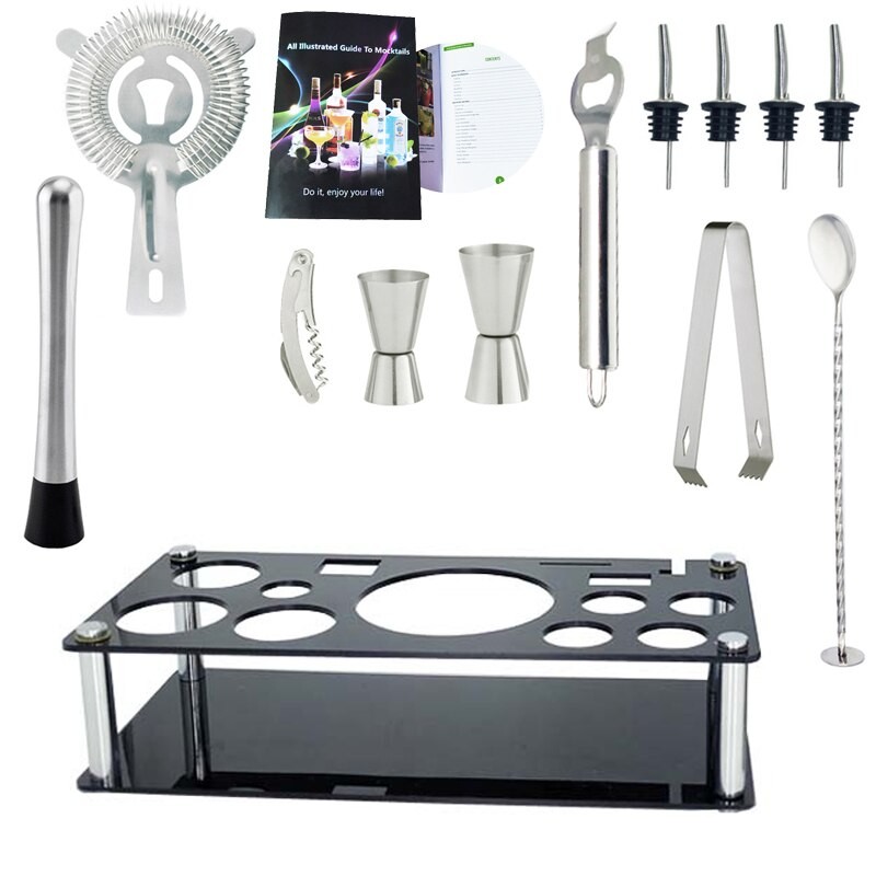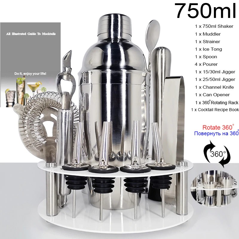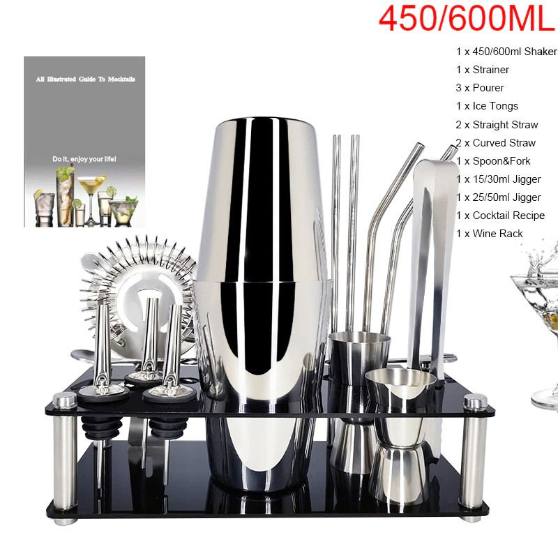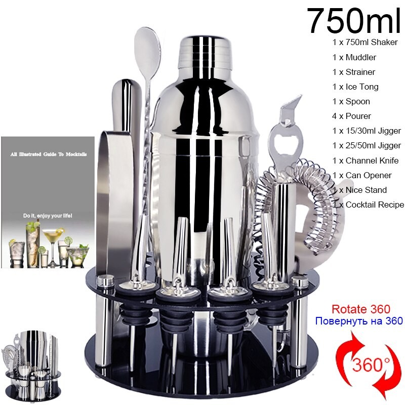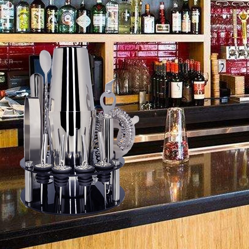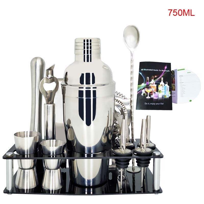 Juego De Coctelera En Acero Inoxidable Para Barman, De 1 A 14 Piezas, Set Mezclador Bebidas Con Kit Barras Y Herramientas, Con Soporte Vino De 600 O 750Ml