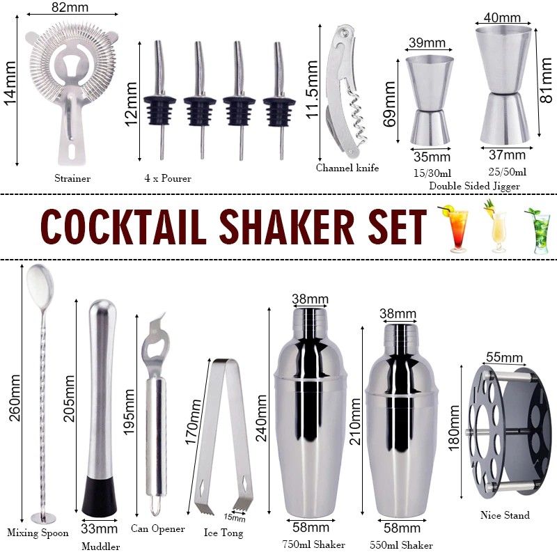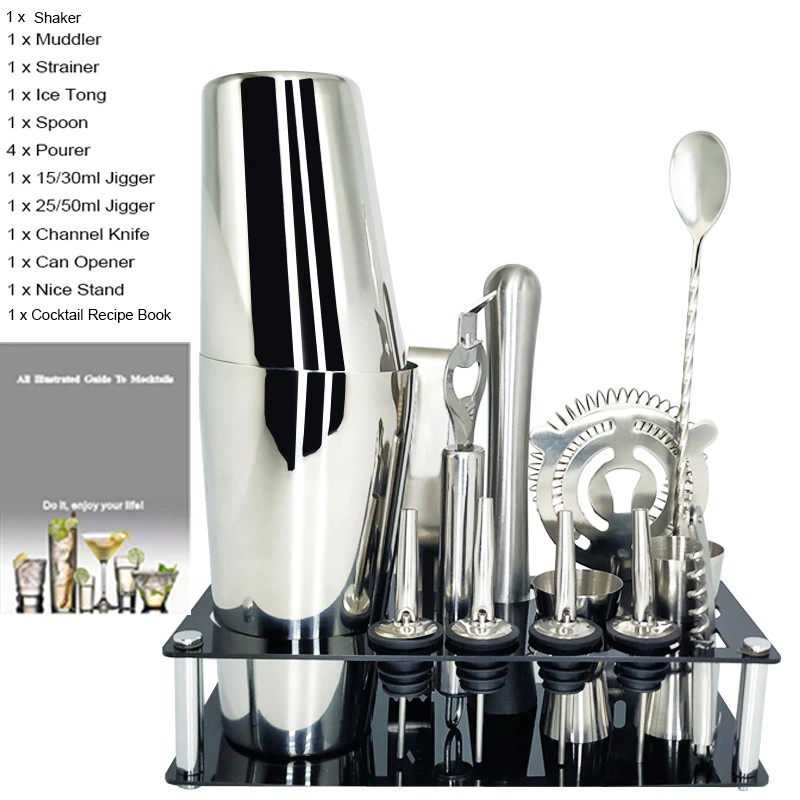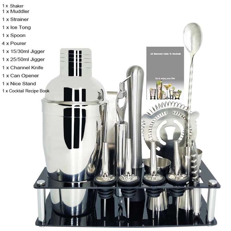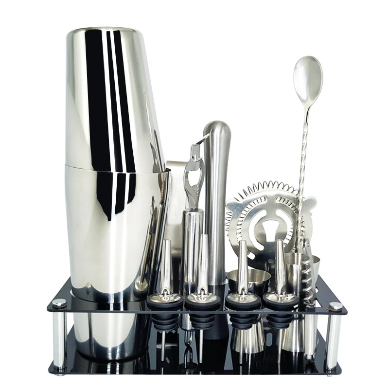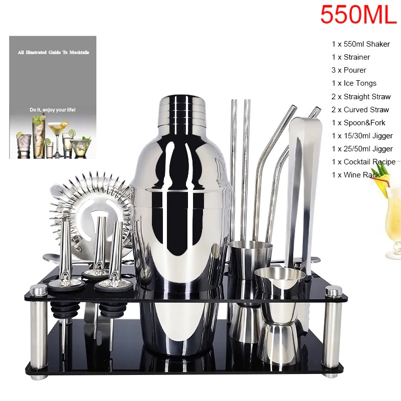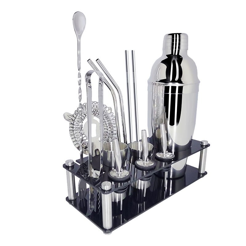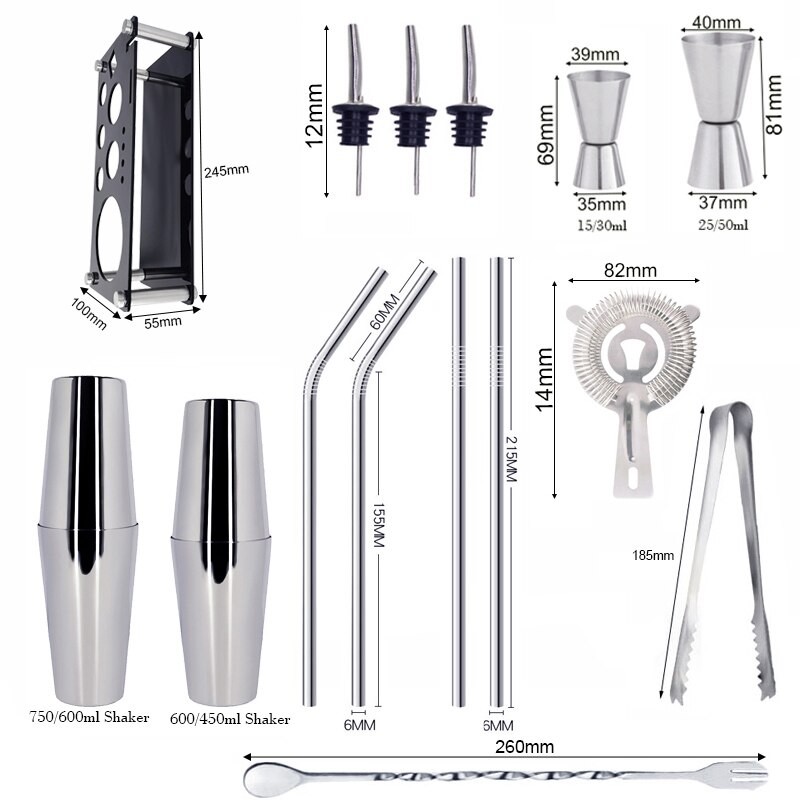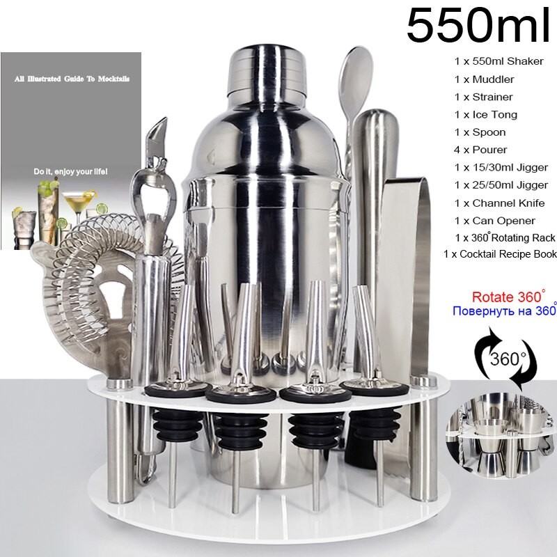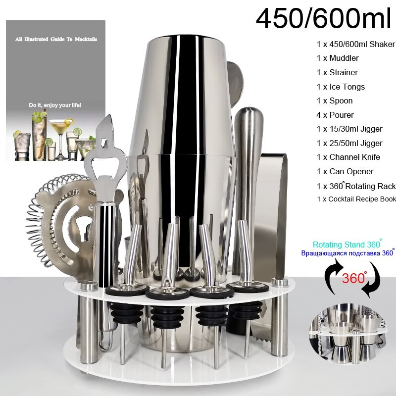 Juego De Coctelera En Acero Inoxidable Para Barman, De 1 A 14 Piezas, Set Mezclador Bebidas Con Kit Barras Y Herramientas, Con Soporte Vino De 600 O 750Ml