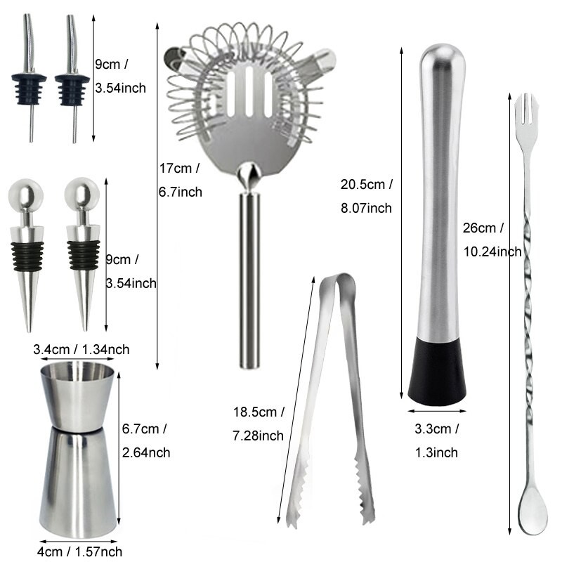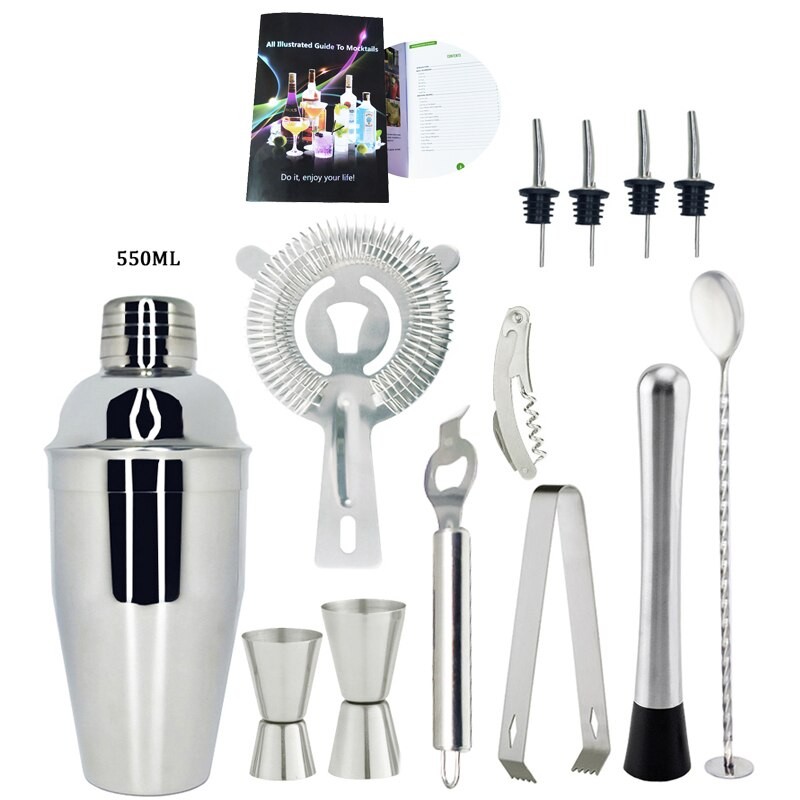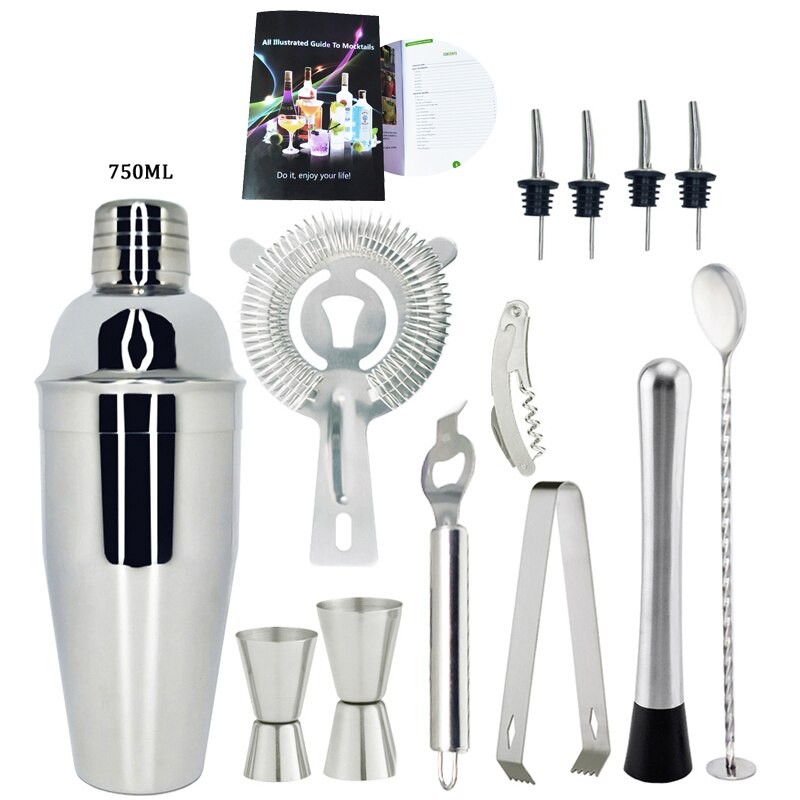Mezclador de coctelera de acero inoxidable de 1-14 piezas, Kit de navegador barman para bebidas, juego de barras, herramienta profesional para camarero