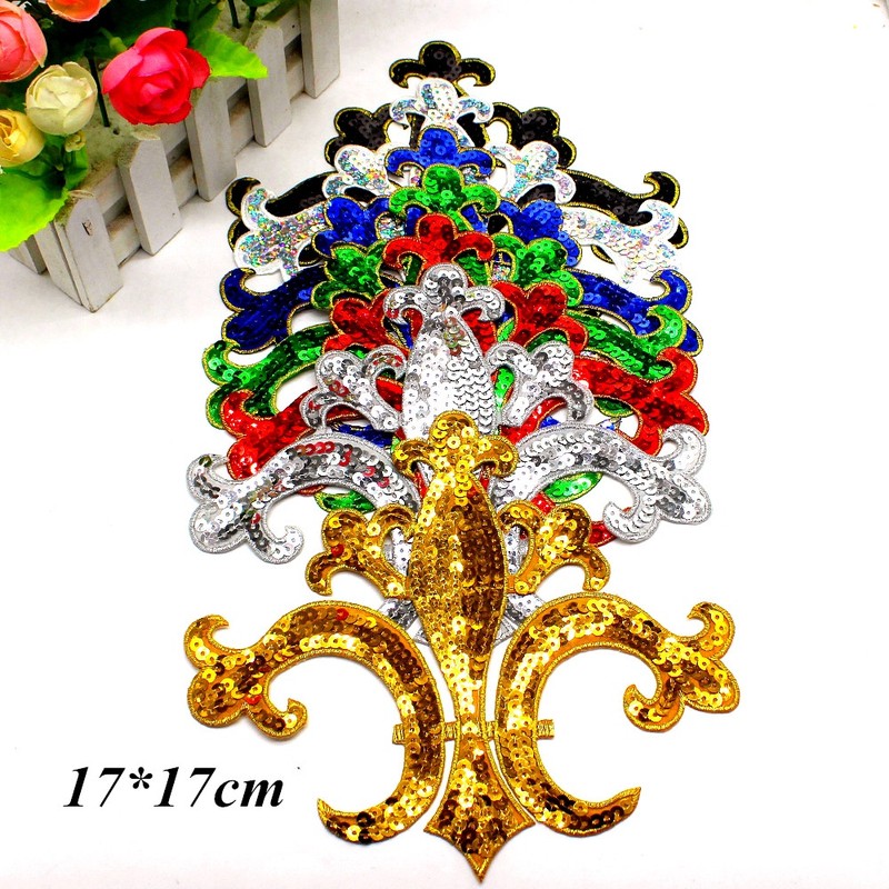 Plancha en apliques de lentejuelas Oro y SILV: hierro en apliques de lentejuelas de oro y plata parches bordados cosplay
