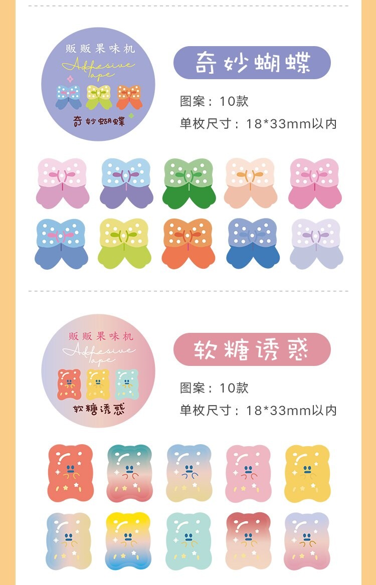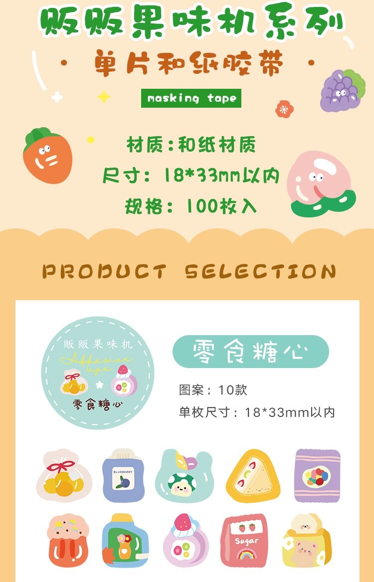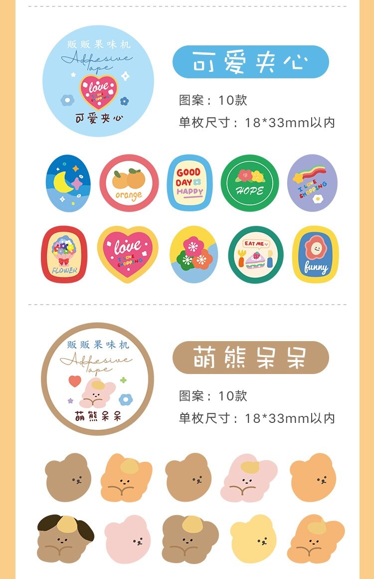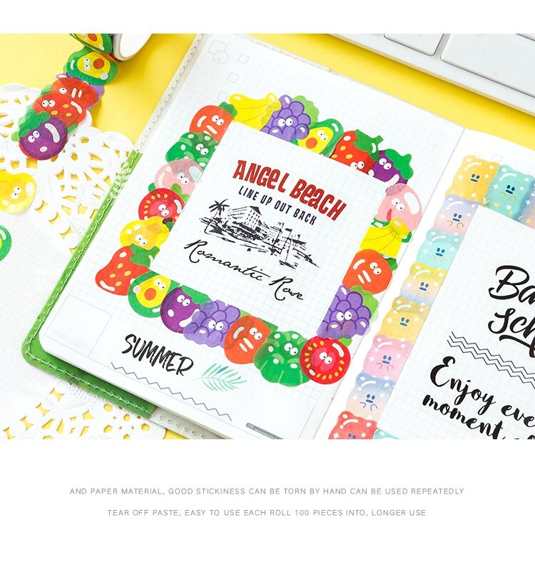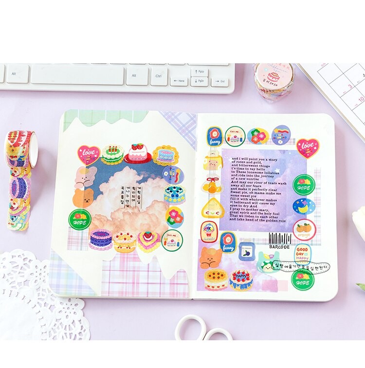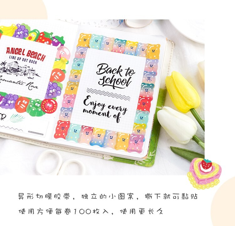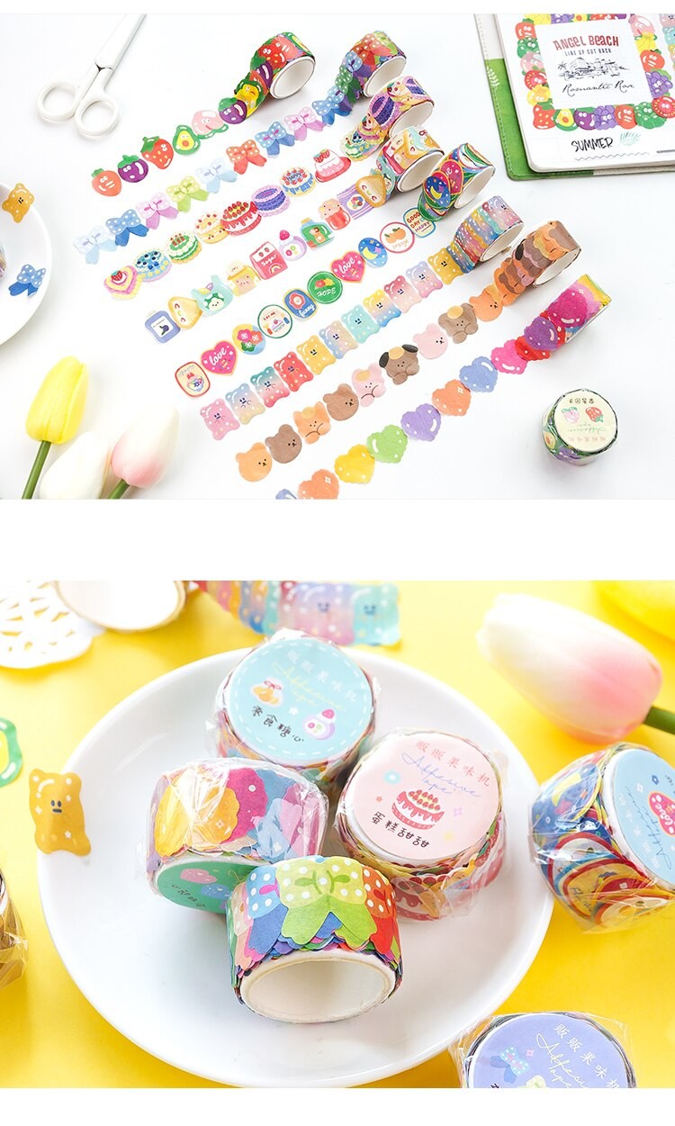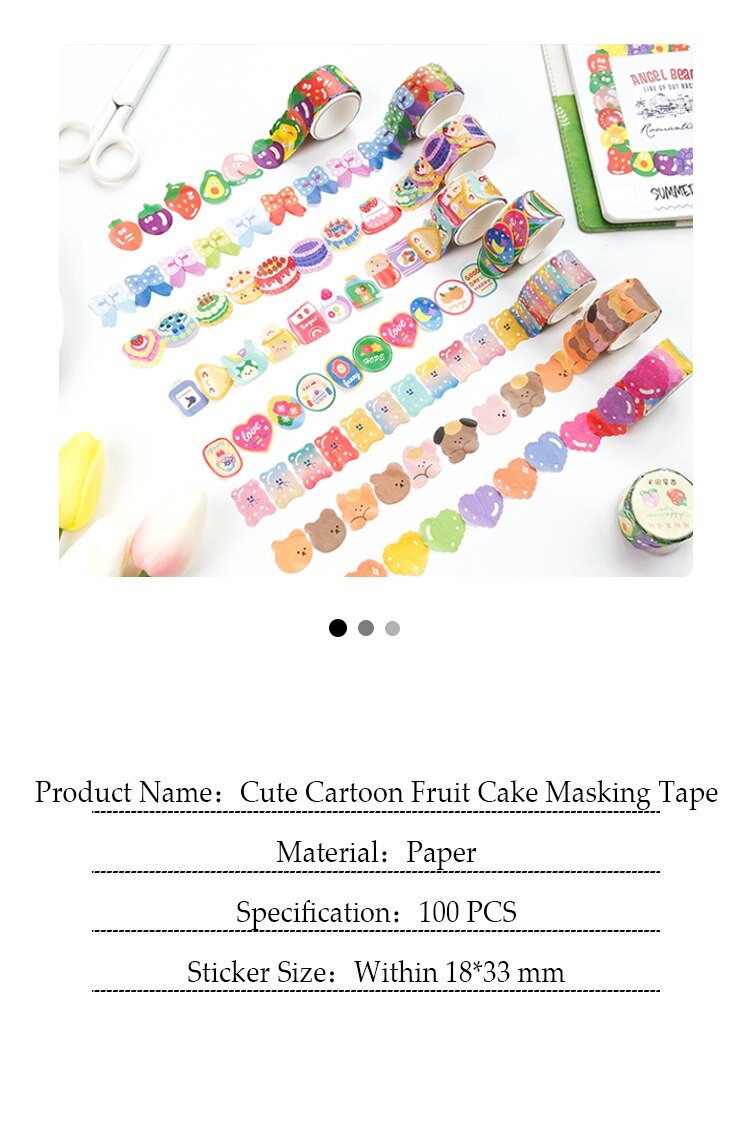 Cinta Adhesiva De Color Caramelo Para Manualidades, 1 Rollo/100 Piezas, Dibujos Animados Oso Fruta Pastel Leche Lazo Corazón, Para Álbum De Recortes