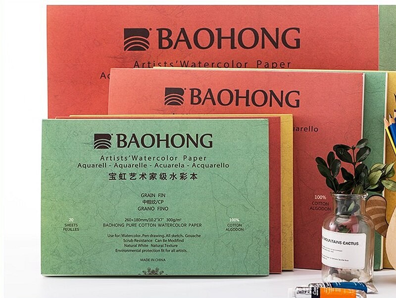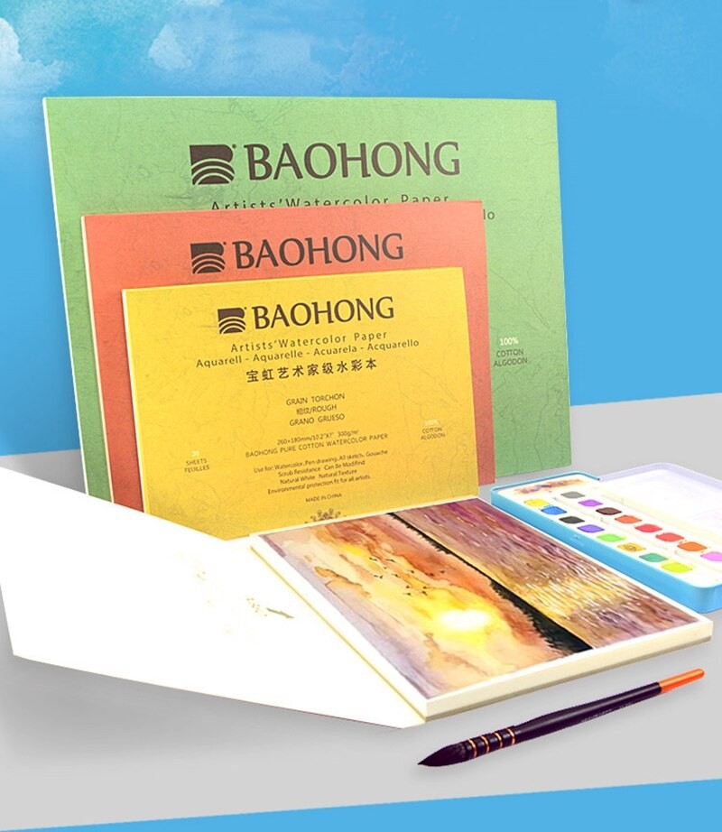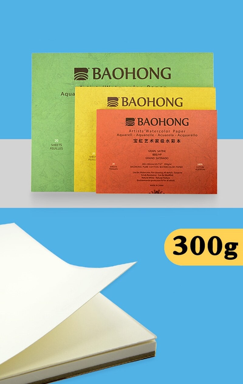 Baohong-Papel De Acuarela Para Artista, Bloc De Bocetos Acuarela Profesional, 100% Algodón 300G 20 Hojas, Suministros De Arte Para Pintar
