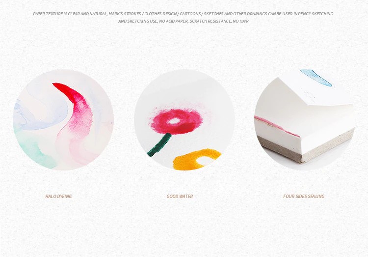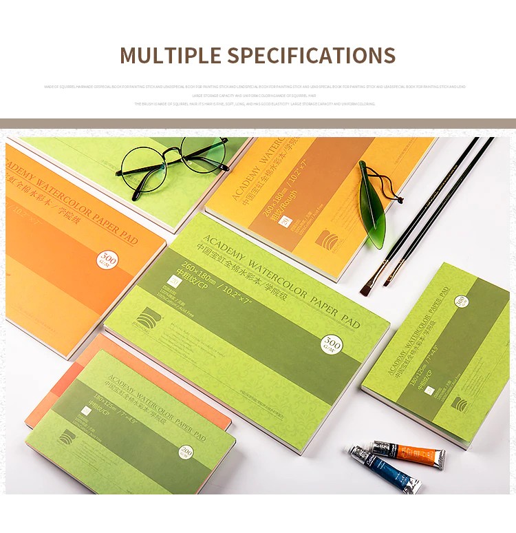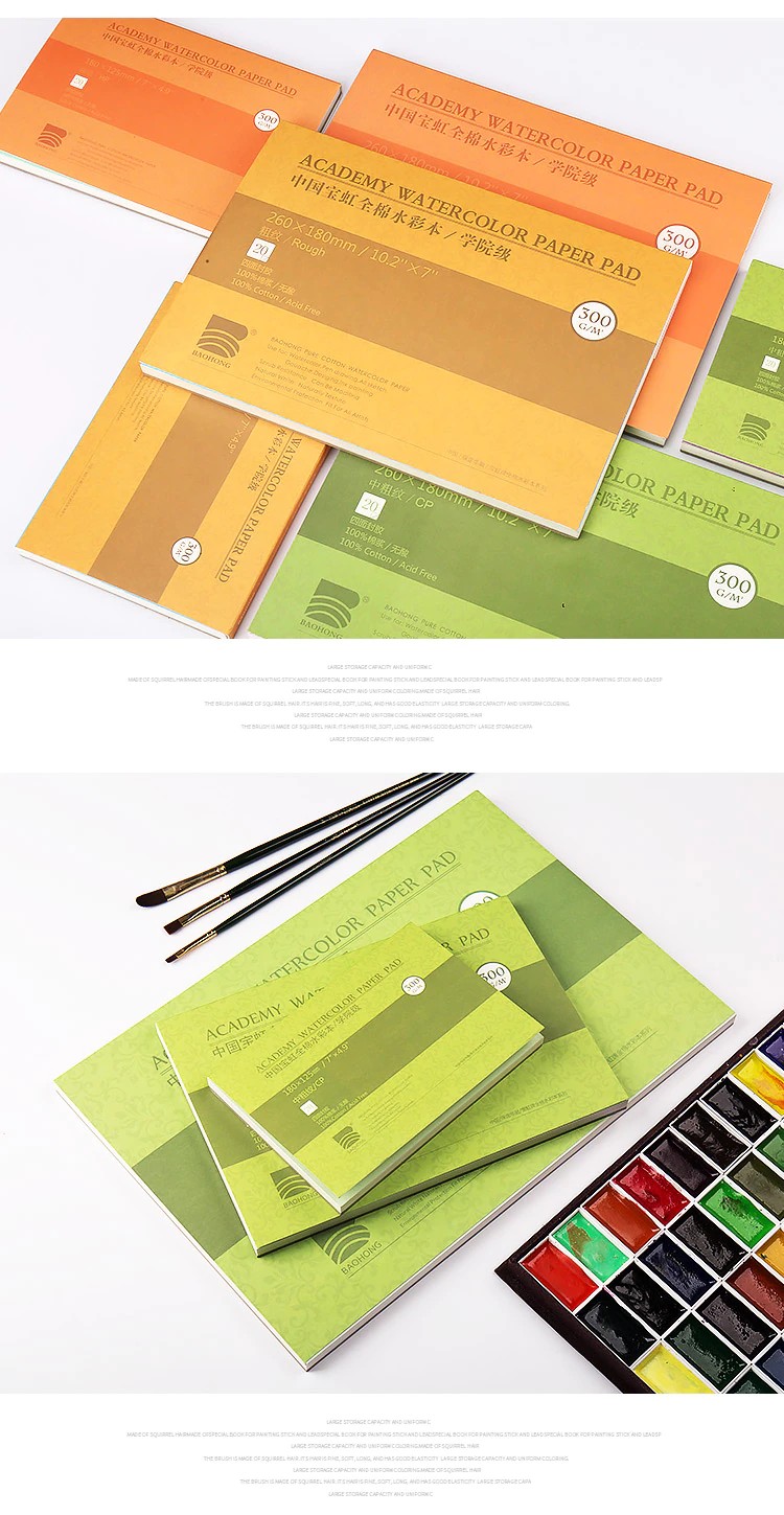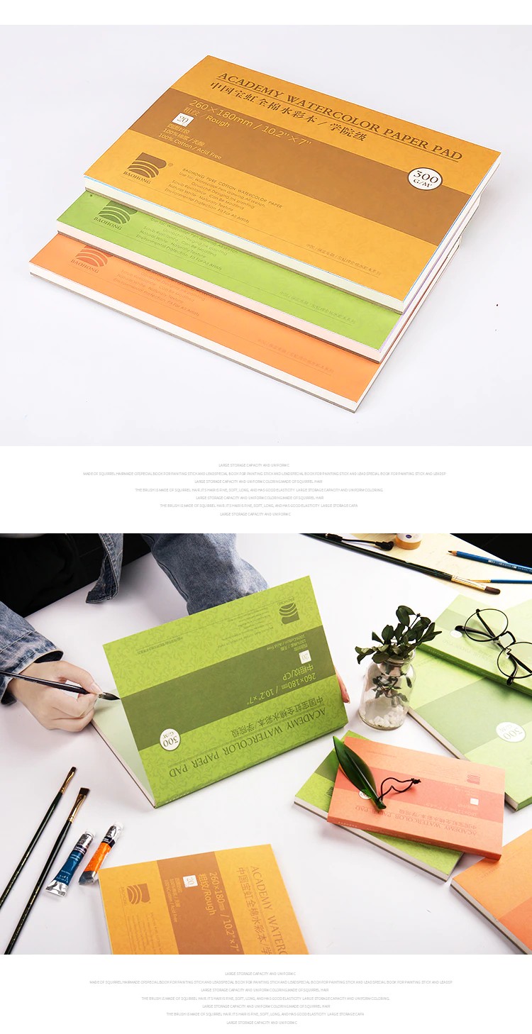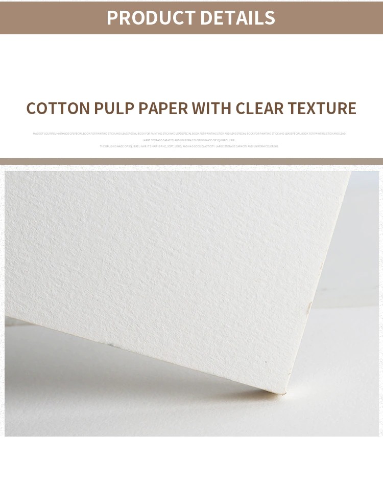 Acuarela de pulpa de algodón, el papel de acuarela está dividido en textura clara (grano fino, grano medio, grano grueso), resiste modificaciones, blanco natural, adecuado para pintura de acuarela