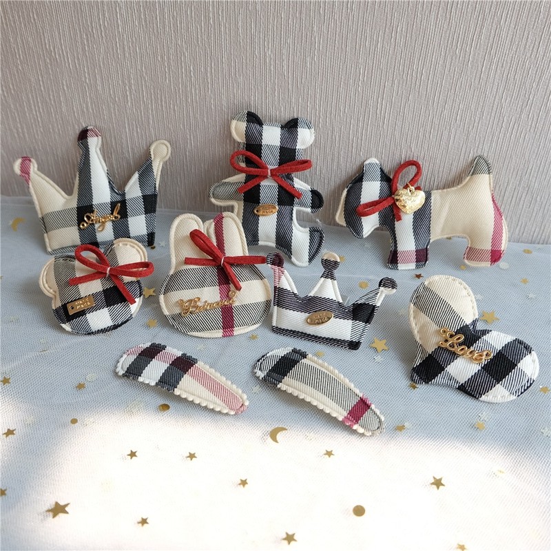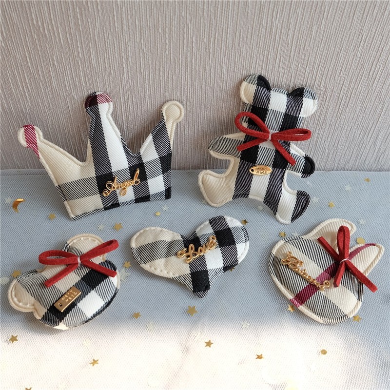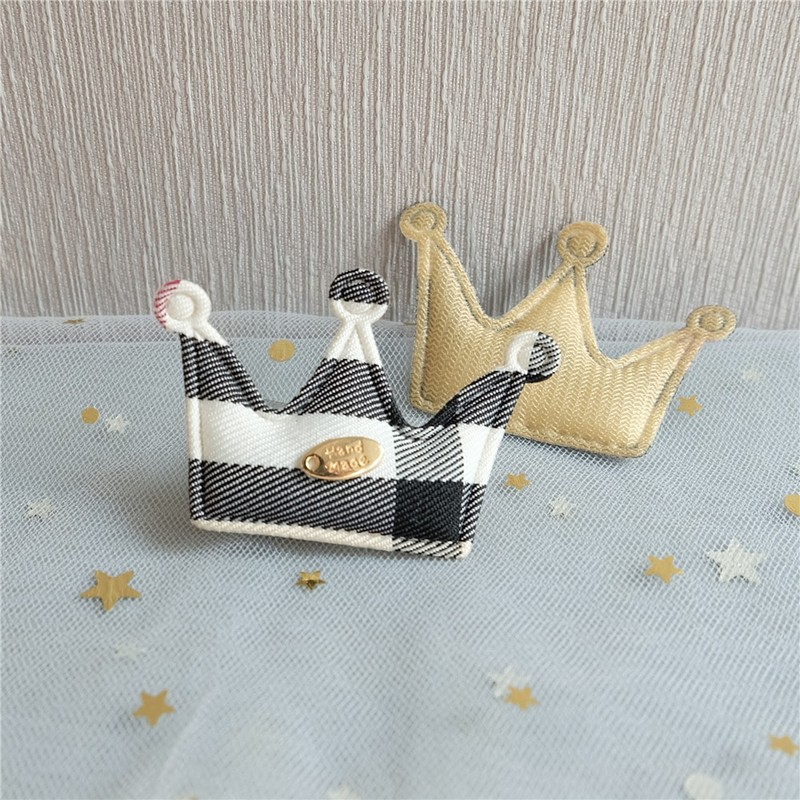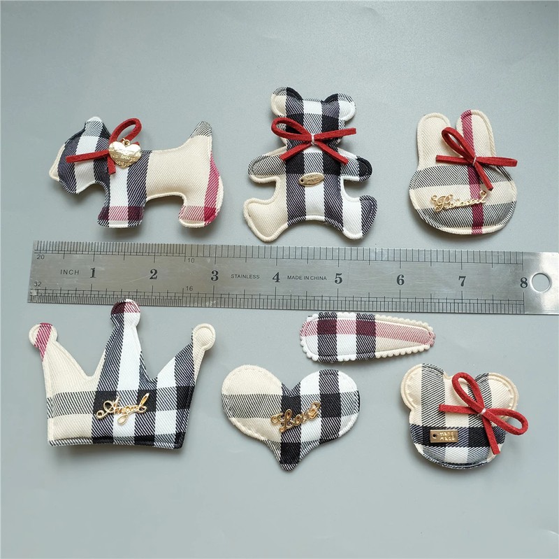 10 piezas de aplique de corona clásico a cuadros, parches acolchados de tela de animales de dibujos animados para sombrero/ropa/suministros de costura/accesorios de Clip para el cabello DIY