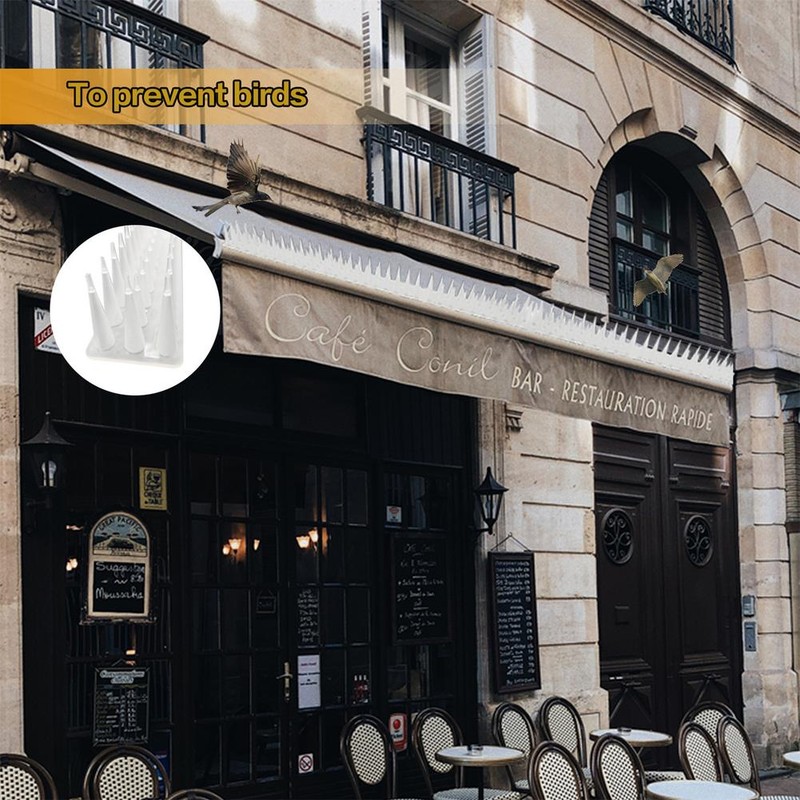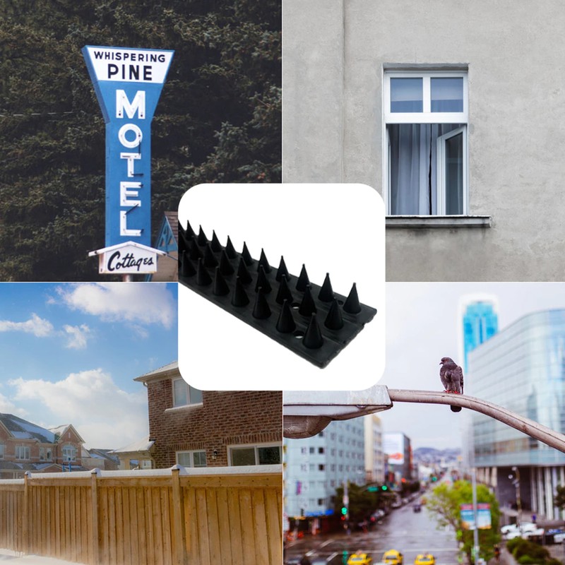 Instale en cualquier lugar: tiras de plástico simples para instalarlas sobre cualquier superficie plana (vallas, puertas, cobertizos, barandillas, repisas, paredes fronterizas). Los picos antitrepadores detienen a intrusos y gatos, mapones, pájaros y más.