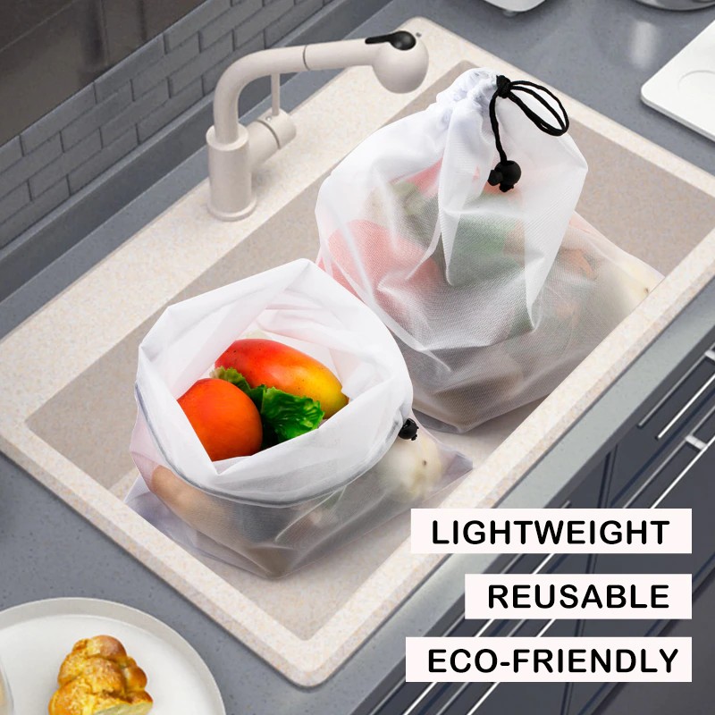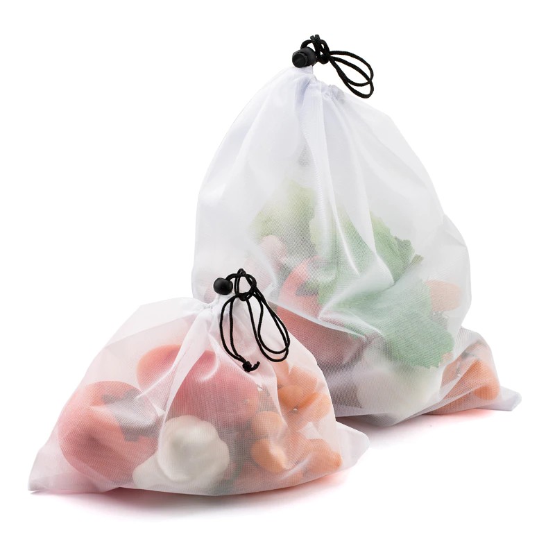 Está hecho de malla de poliéster fuerte, ligera, fácil de ver, sin plástico y que protege el medio ambiente. Nuestras bolsas de malla se pueden lavar a máquina.