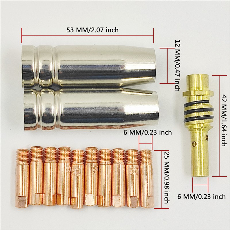 13 piezas 14AK consumibles de antorcha de soldadura 0,6mm 0,8mm 0,9mm 1,0mm 1,2mm MIG antorcha Gas boquilla soporte de punta de 15AK MIG MAG antorcha de soldadura