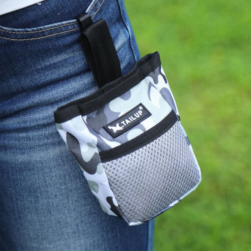2. El diseño de cierre de nylon puede evitar que las golosinas y artículos de mascotas se caigan, y es fácil llevar la comida.