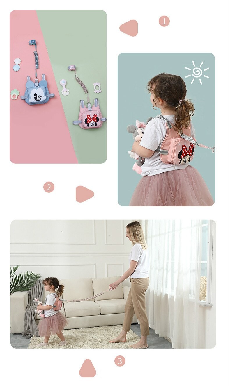 Disney-Andador Antipérdida 2 En 1 Para Bebé, Arnés De Seguridad Con Correas Para Bebé, Chaleco De Cuerda, Cinturón De Mano Para Caminar