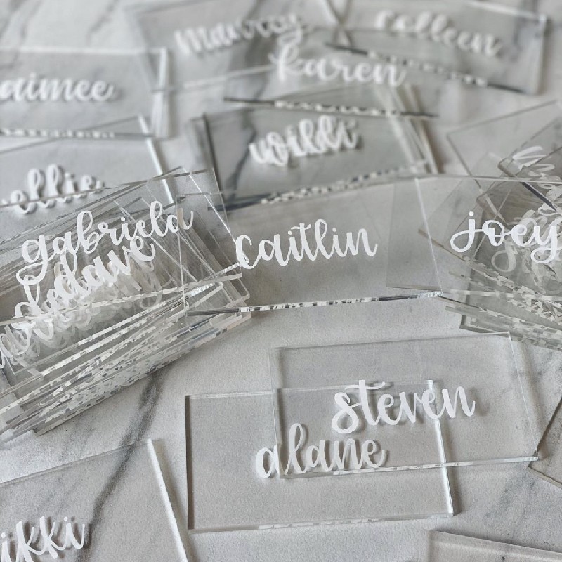 Azulejos Acrílicos Rectangulares Para Decoración De Bodas, Azulejos De Acrílico De Corte Láser Para Invitados, Caligrafía Moderna Plexi, 20 Y 50 Piezas