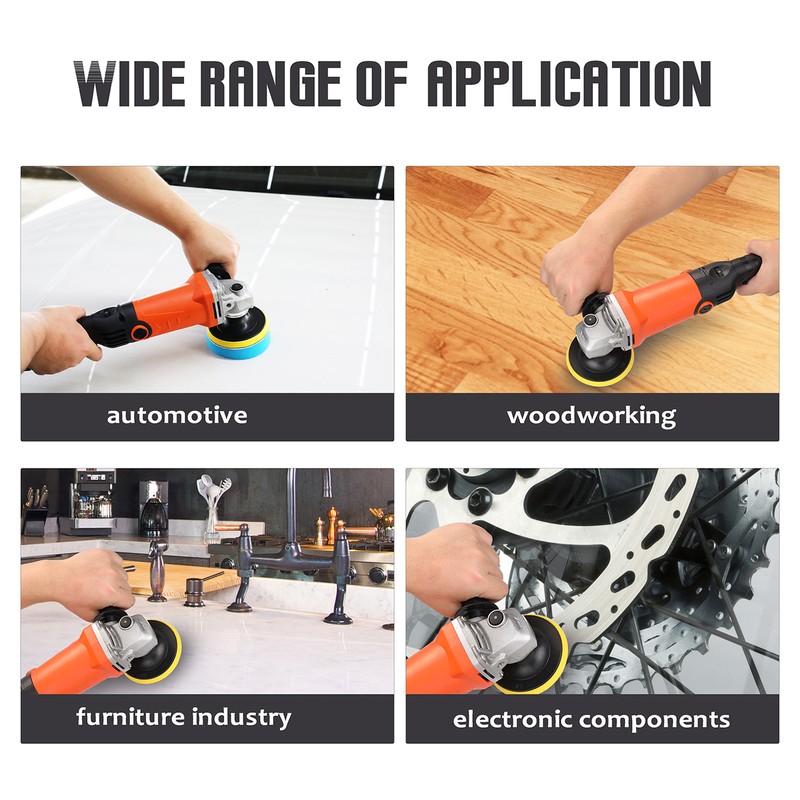 Velocidad de 1-7 engranajes ajustable, puede controlar la velocidad de rotación de la máquina, adecuada para diferentes materiales de pulido, encerado y esmalte de sellado. 1-3 engranajes para jade y porcelana, 3-5 engranajes para cuero y suelo, 4-7 engranajes para coche y muebles.