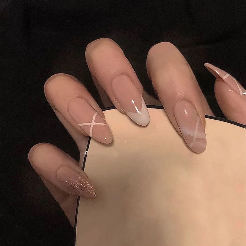 El paquete incluye: 24 unids/bolsa puntas de uñas postizas + 1 pegamento de presión