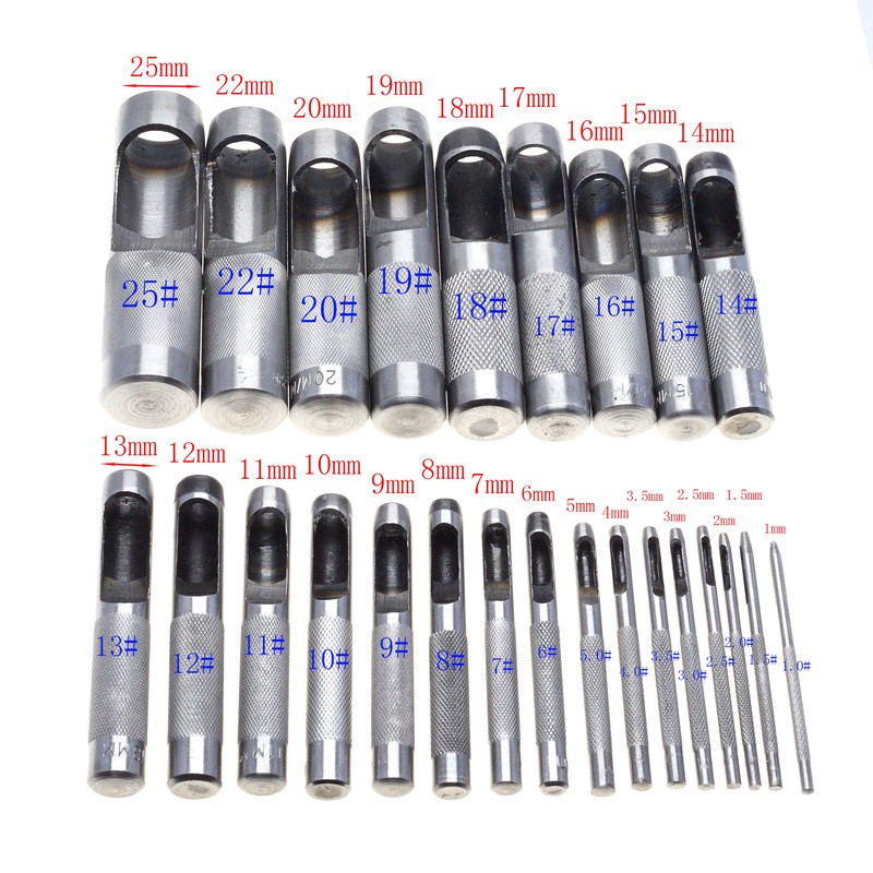 Herramientas Para Perforar Cuero, Juego De Agujeros Para Artesanía De Cuero, Perforadora Hueca Cinturón De 1 0Mm-25Mm Para Ropa Y Lona, 25 Tamaños