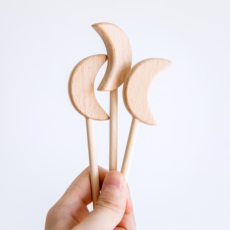 Varitas Mágicas De Madera De Haya Para Bebé, Varitas Mágicas Juguete Estrella Cinco Puntas, Juego De Roedores Waldorf Gimnasio Luna Corazón Para Niña Y Niño, 2 Uds.
