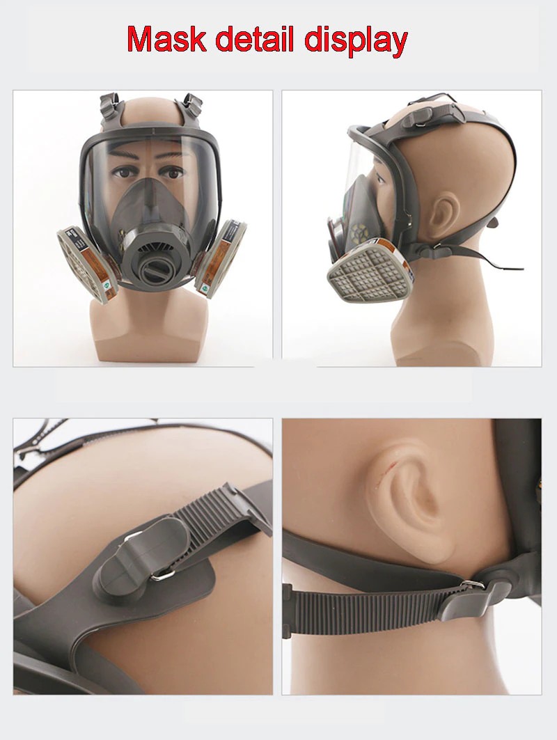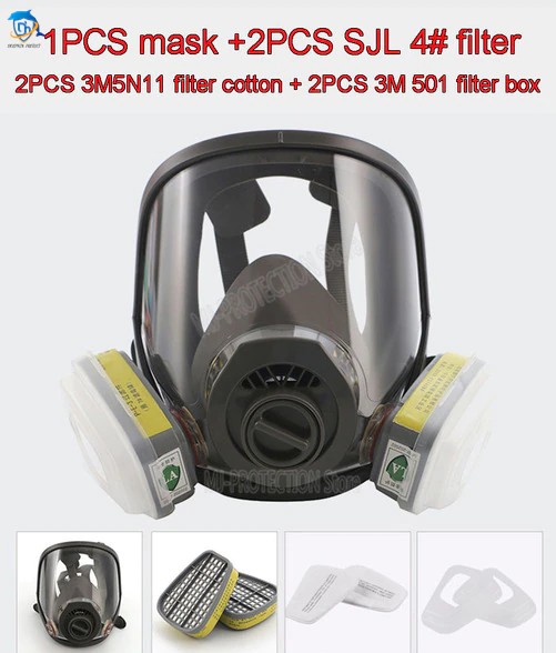 Una máscara = 1 pieza de máscara + 2 piezas SJL 3 # filtro + 2 piezas 5N11 Filtro de algodón + 2 piezas 501 cubierta de filtro características del producto: como benceno y homologías, gasolina, acetona, disulfuro de carbono, éter, chloropicrin, adecuado para pintura, pulverización de pesticidas.