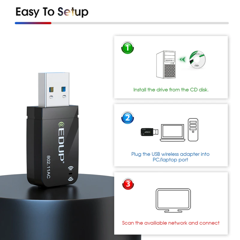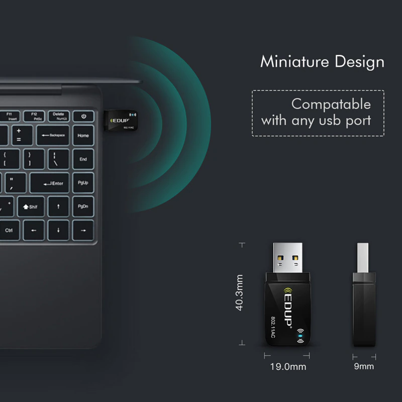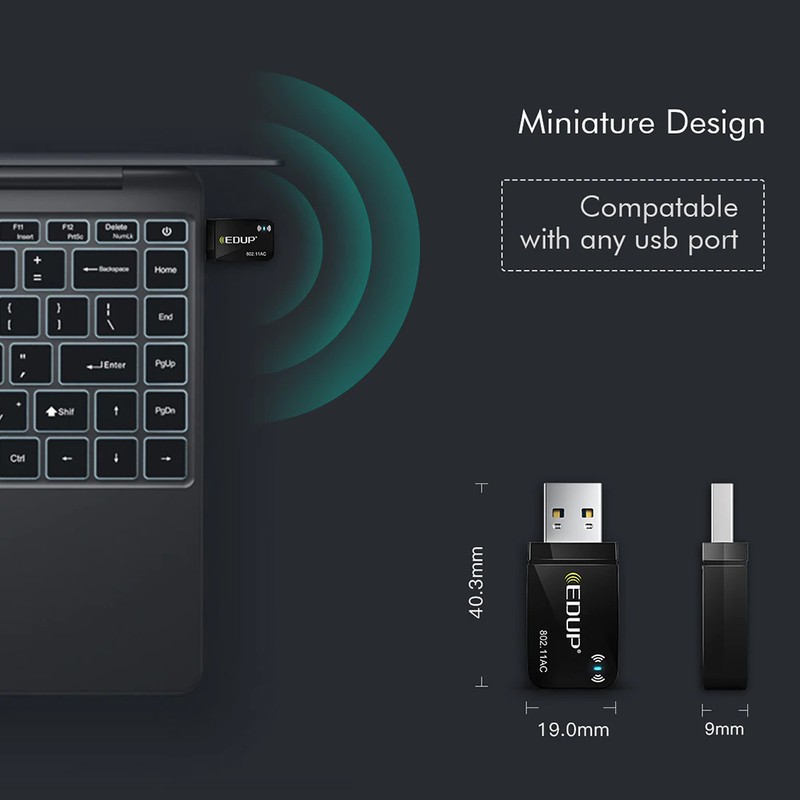 Edup-Mini Adaptador Wifi De 300M-1300 Mbps, Adaptador Inalámbrico Ca Usb, Con Tarjeta De Red De Doble Banda 5G/2 4 Ghz Para Pc, Escritorio Y Portátil