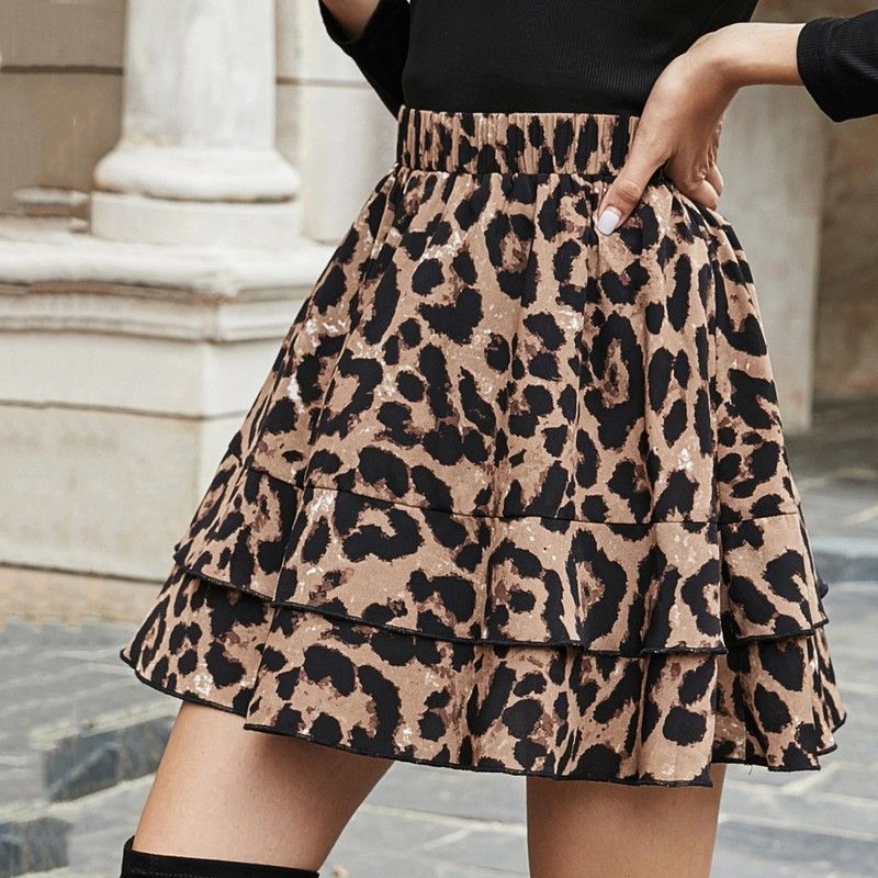 Mini falda drapeada corta de cintura alta con volantes Vintage y estampado de leopardo para mujer a la moda