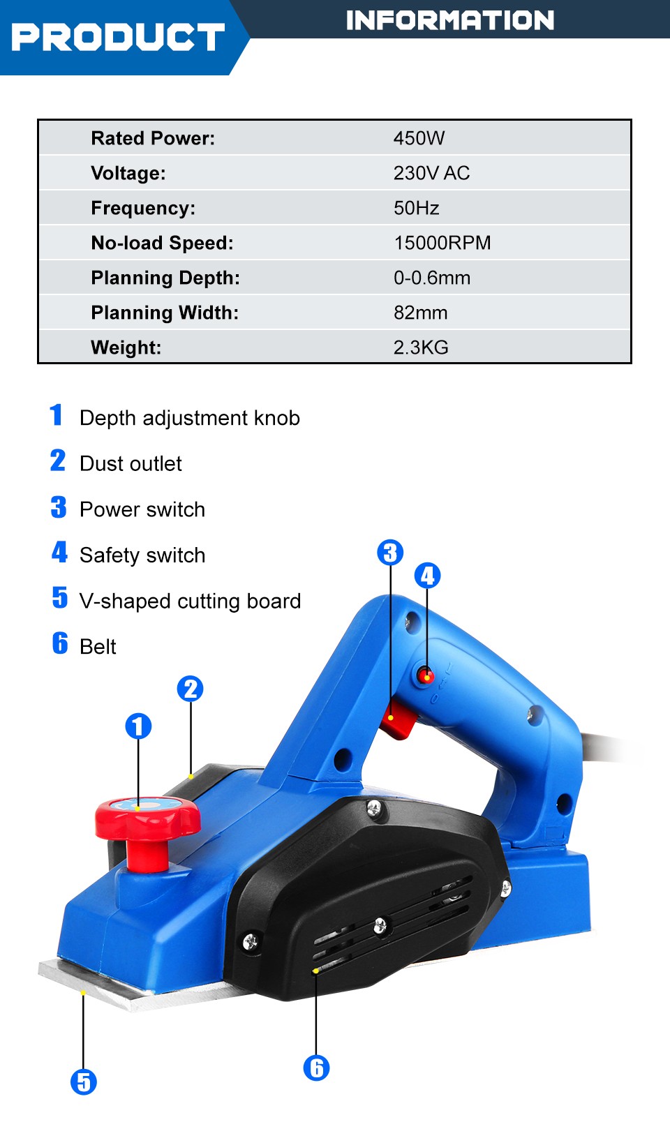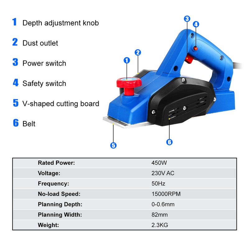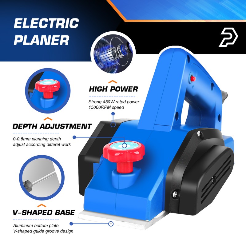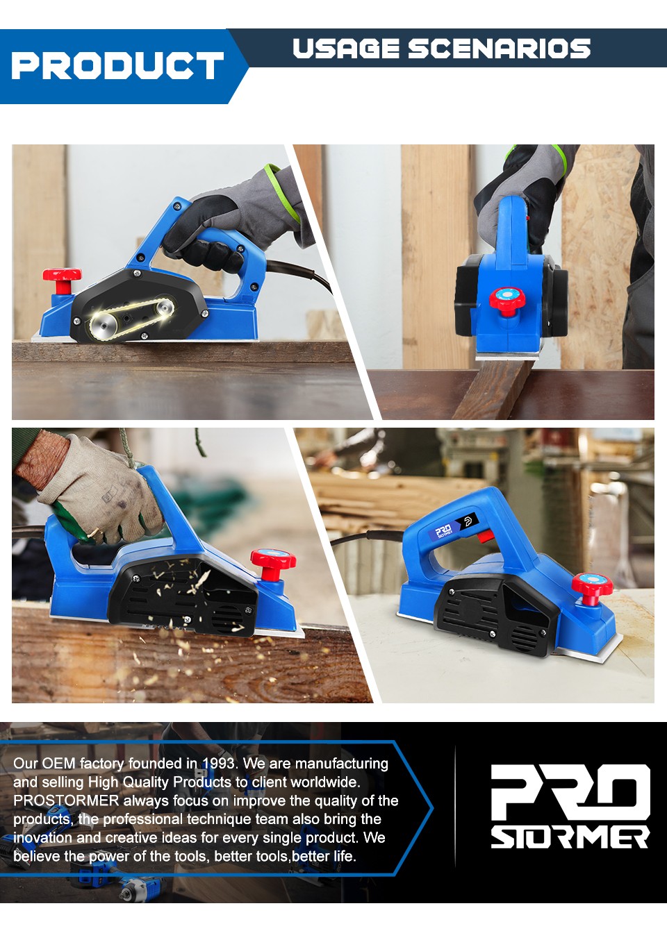Cepillo Eléctrico De 450W, Herramienta Manual De Corte Madera Multifuncional, Potente Con Forma V Profundidad De Corte Ajustable, 15000Rpm-Prostormer