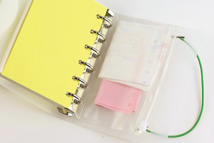Bolsillos para Carpeta tamaño A6, Carpetas con cremallera para cuaderno de 6 anillos, bolsa impermeable de PVC, bolsas para archivar documentos