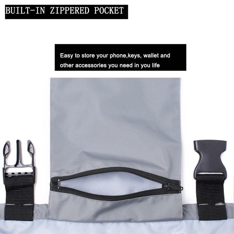 Impermeabilidad y resistencia al agua:El bolsillo frontal en el pecho con cierre de cremallera resistente al agua es ideal para cebo y señuelos.