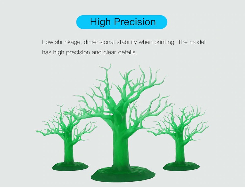 Dureza adecuada. Todas las resinas cúbicas UV tienen una buena combinación de dureza y dureza, lo que facilita la eliminación del modelo y los detalles de impresión finos.