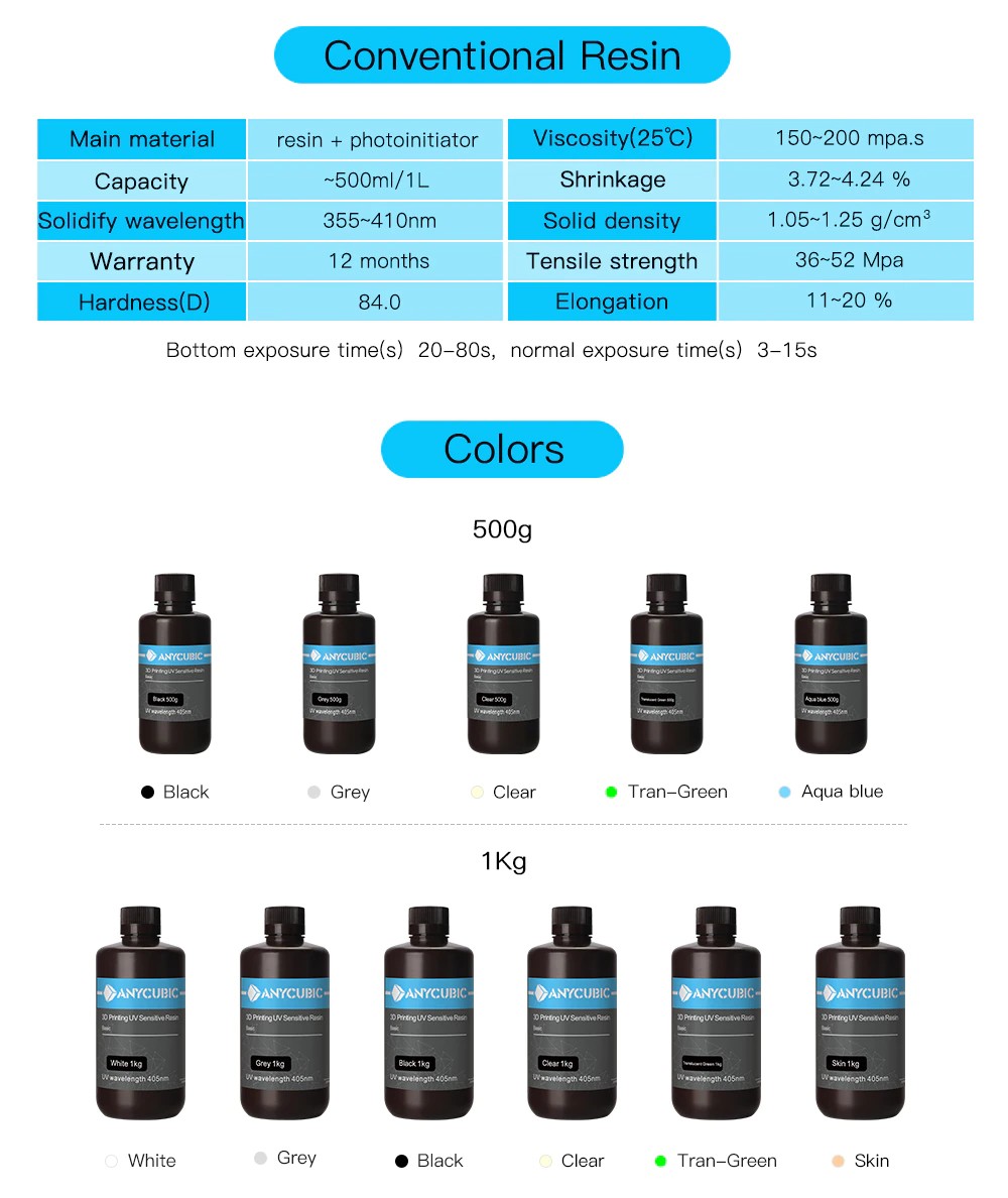 ANYCUBIC 500g/1kg resina de fotopolímero líquido 405nm resina UV para impresora LCD 3D Material de impresión para fotón/fotón S/fotón Mono X
