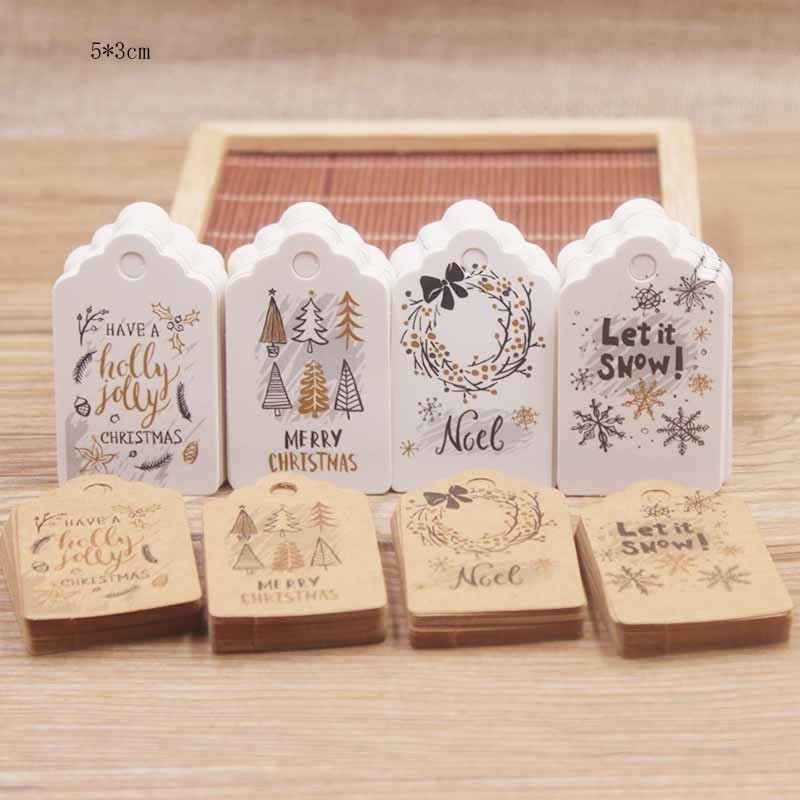 Etiquetas De Feliz Navidad, Tarjetas De Papel Kraft, Etiquetas Colgantes Diy Decoración Envoltura De Regalo 5X3Cm /2X4Cm, 50 Uds.