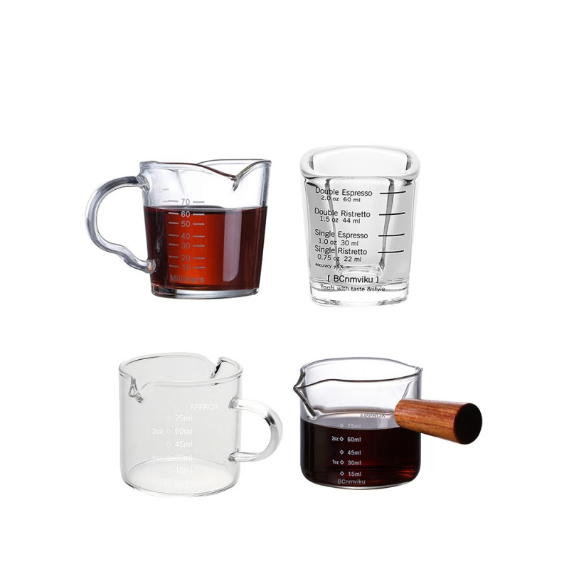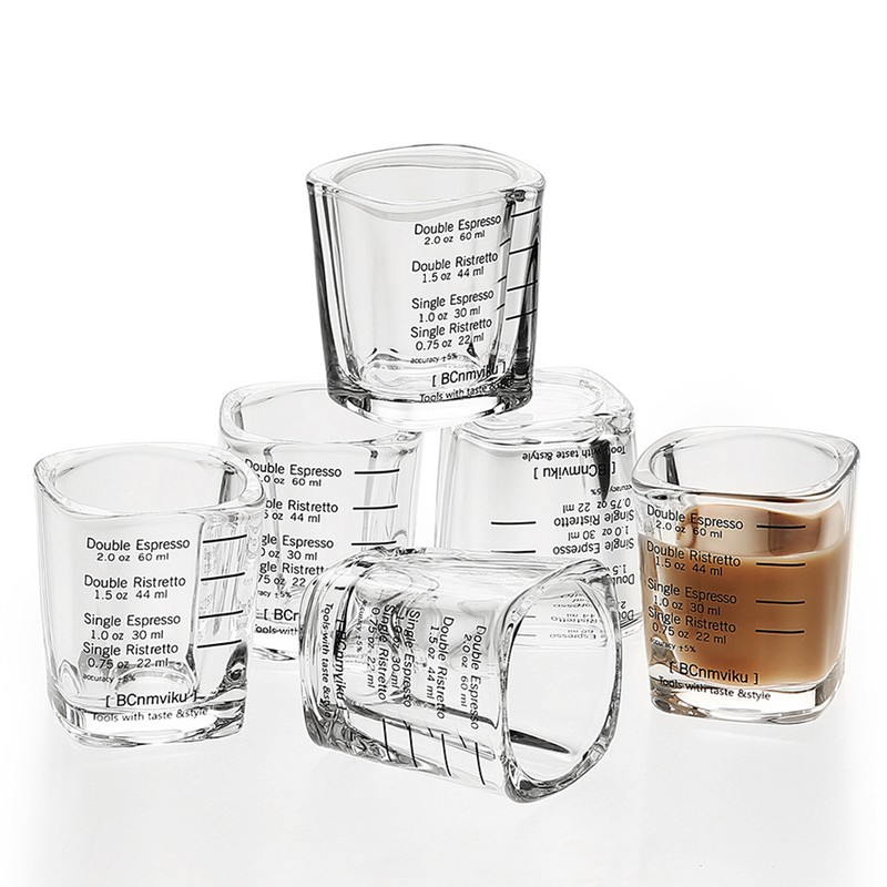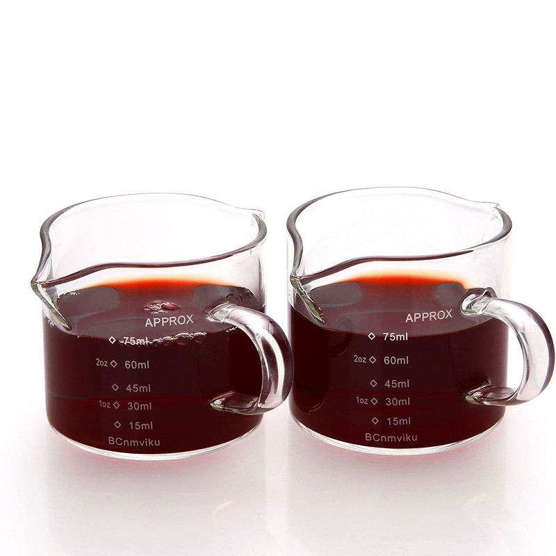 Vaso Medidor De Doble Caño Para Espresso, Vaso De Vidrio Resistente Al Calor Con Mango, Escala Transparente Para Vino Leche Y Café, 60/75Ml
